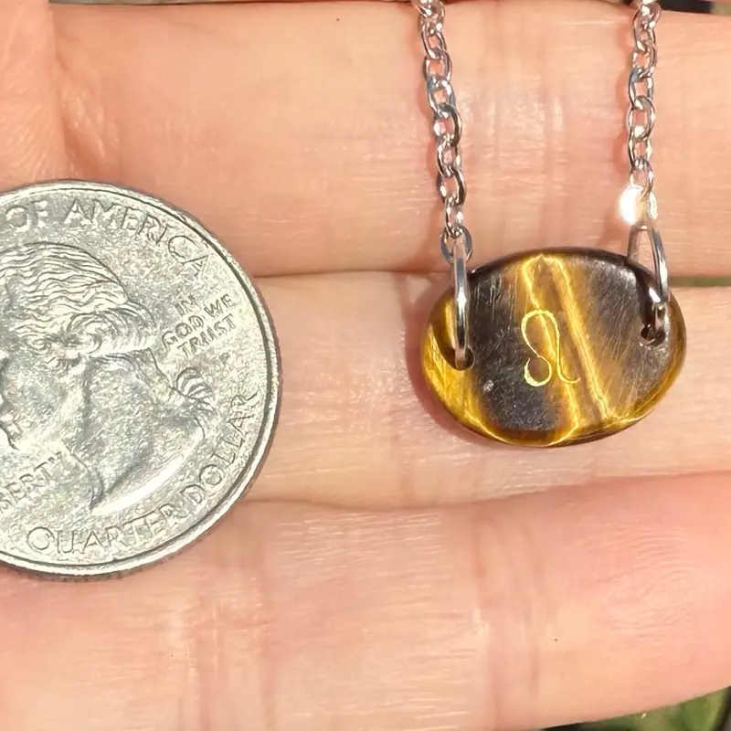 Tiger Eye Crystal Necklace with Leo ♌️ Zodiac Sign Pendant on 18 inch hypoallergenic stainless steel chain