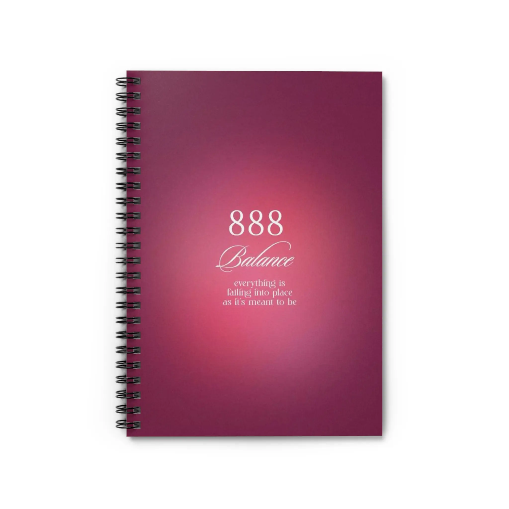 A compact, ruled spiral notebook with a calming, rose-mauve cover that invites quiet focus. The front shows a subtle centered design reading “888 Balance,” giving the notebook a mindful, intentional feel — great for morning pages, tracking moods, or sketching plans. Inside, smooth 90 gsm lined pages welcome everyday handwriting without bleed, while a sturdy 350 gsm cover and metal spiral keep everything secure and easy to flip. A built-in document pocket on the inside back cover tucks receipts, notes, or inspiration safely away. Sized at 6" x 8", it slips into a tote or work bag so you can capture thoughts whenever they arrive.