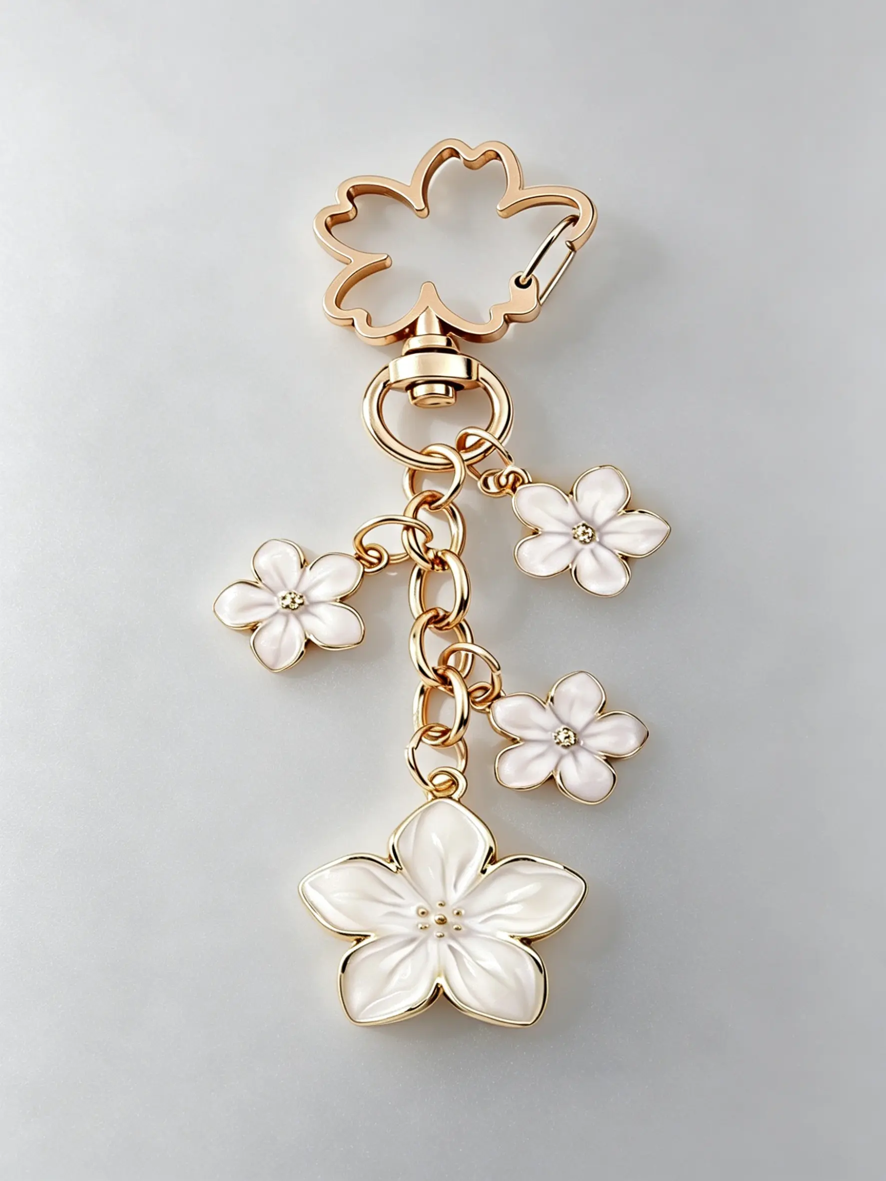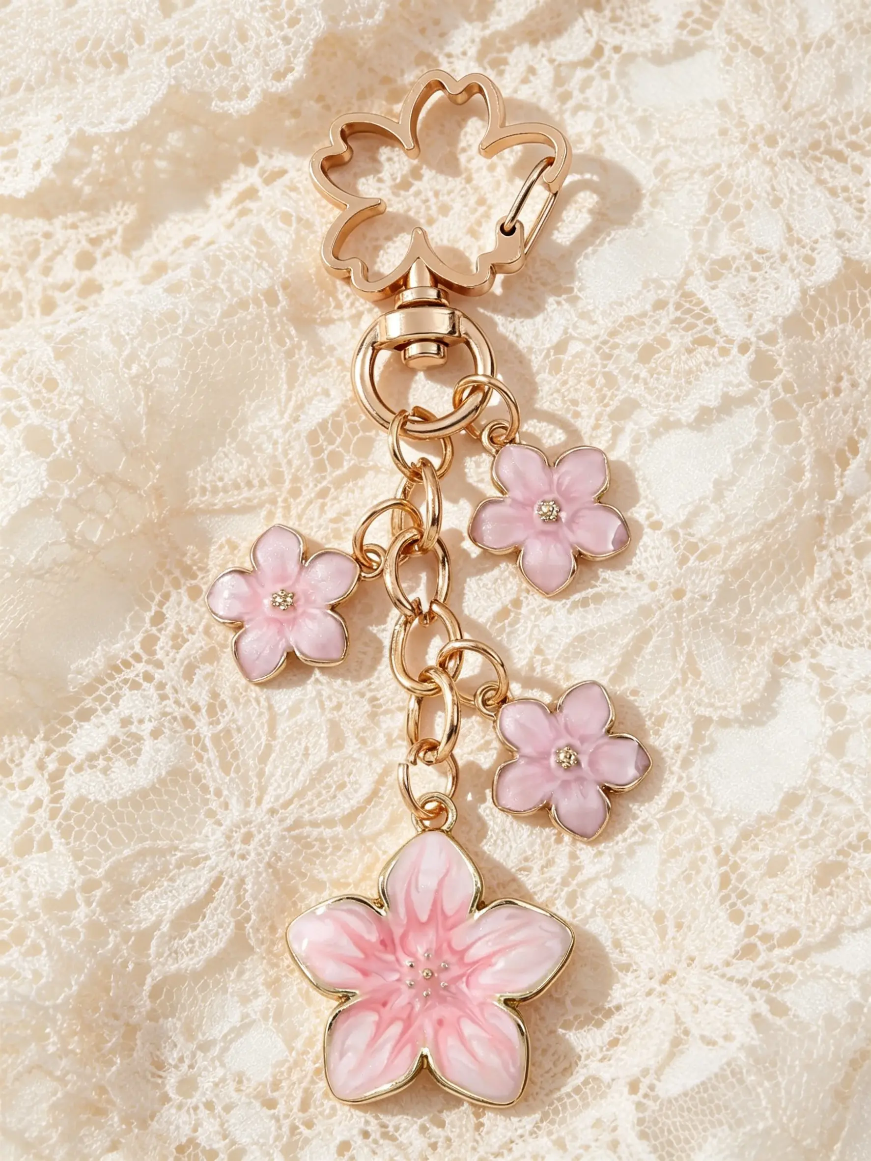 Elegant Sakura Flower Alloy Keychain, Stylish Plant Charm, Trendy Bag Pendant, Perfect Gift for Friends and Family, Memorial Present
