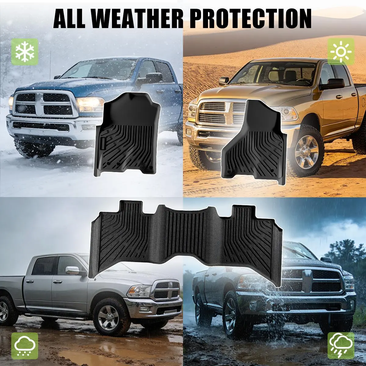 These TPE car floor mats are compatible with Ram 1500 2009-2018. They offer all-weather protection, being sturdy, stain-resistant, waterproof, and anti-slip. The rubberized nibs ensure no-slip grip, and ergonomic grooves provide foot traction and comfort. �️