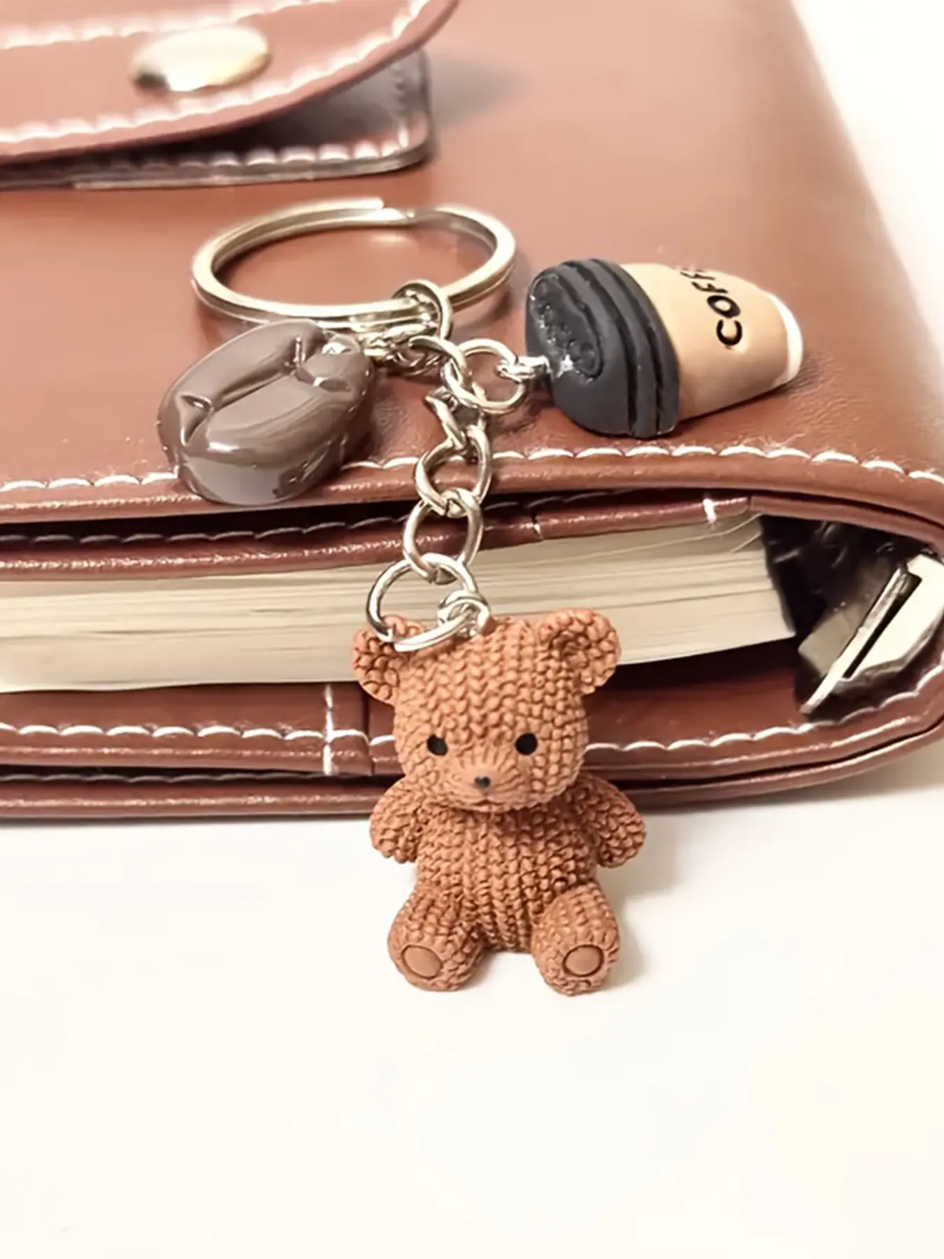 Cute Teddy Bear Coffee Charm Keychain, Bag Decoration, Fashion Accessory for Women, Birthday Gift, Party Favor