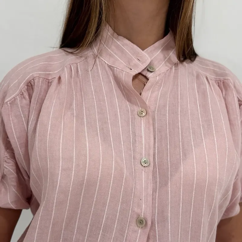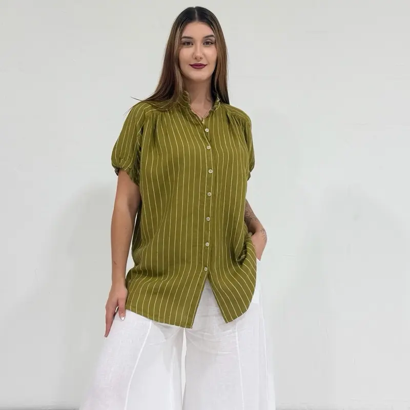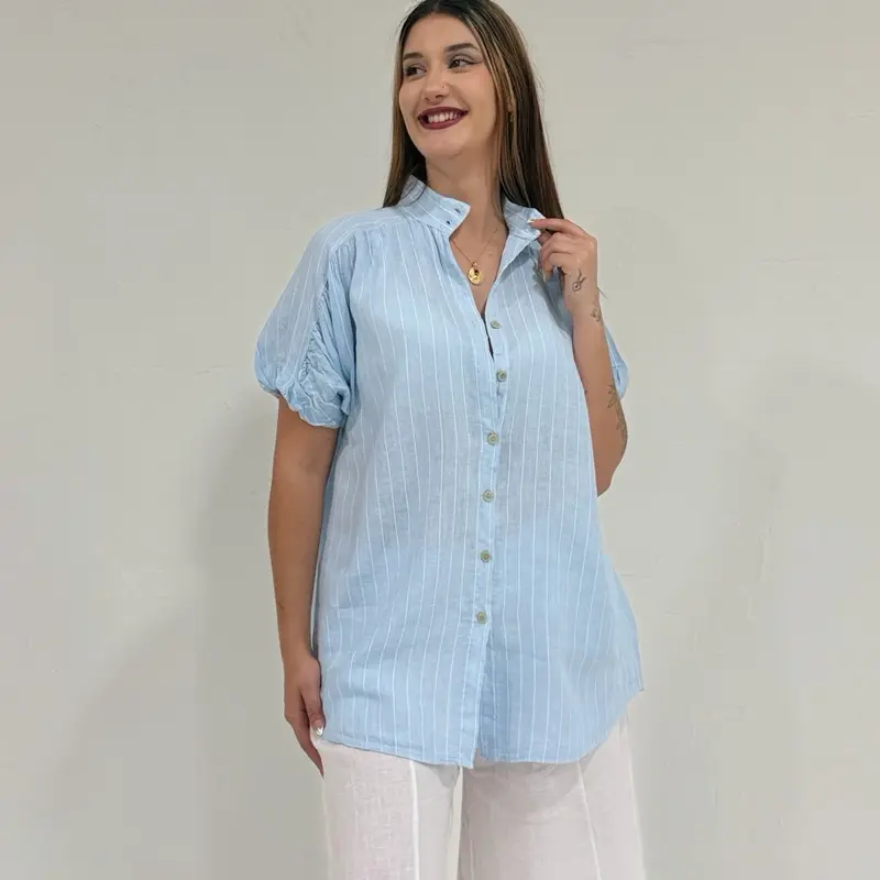 The short sleeves and airy linen fabric make it ideal for summer days, vacations, beach outings, or casual chic city looks. Pair it with linen pants, shorts, or skirts for a complete effortless outfit.
