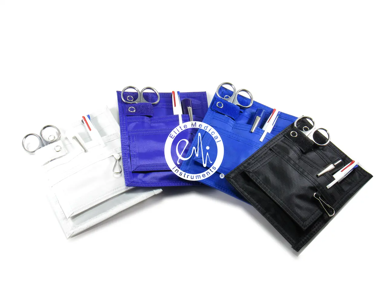 The Elite Medical Instruments 4 piece scrub pocket organizer nurse kit (Model # EAO-321) is the perfect companion for a nurse!