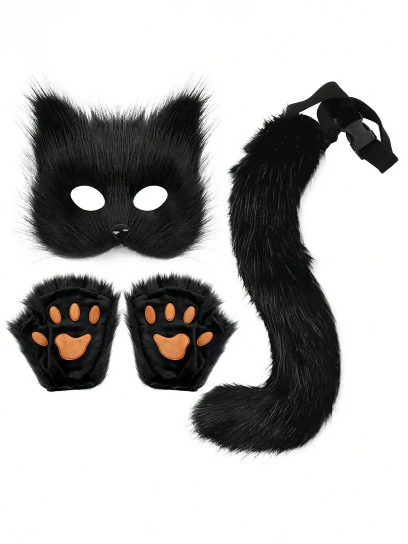 3-Piece Cosplay Costume Set, Realistic Fox Ears Top, Plush Fox Tail, Fox Mask, Perfect for Festivals, Parties, Role-Playing
