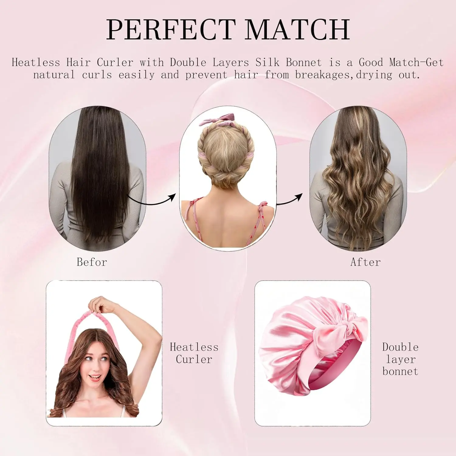 ·Good Combination: The silk bonnet good match with our heatless curlers. After haircare, set your curls with our curls and secure with the bonnet to: Prevent haircare products staining pillows, Maintain curl pattern overnight ,Protect hair integrity , Wake up to defined, healthy waves