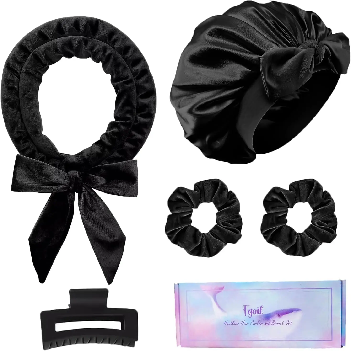 ·Package Includes: 1 x Overnight heatless curling rod, 2 x Flannel hair ties, 1 x Claw clip, 1 x Double-layer silk satin sleep bonnet