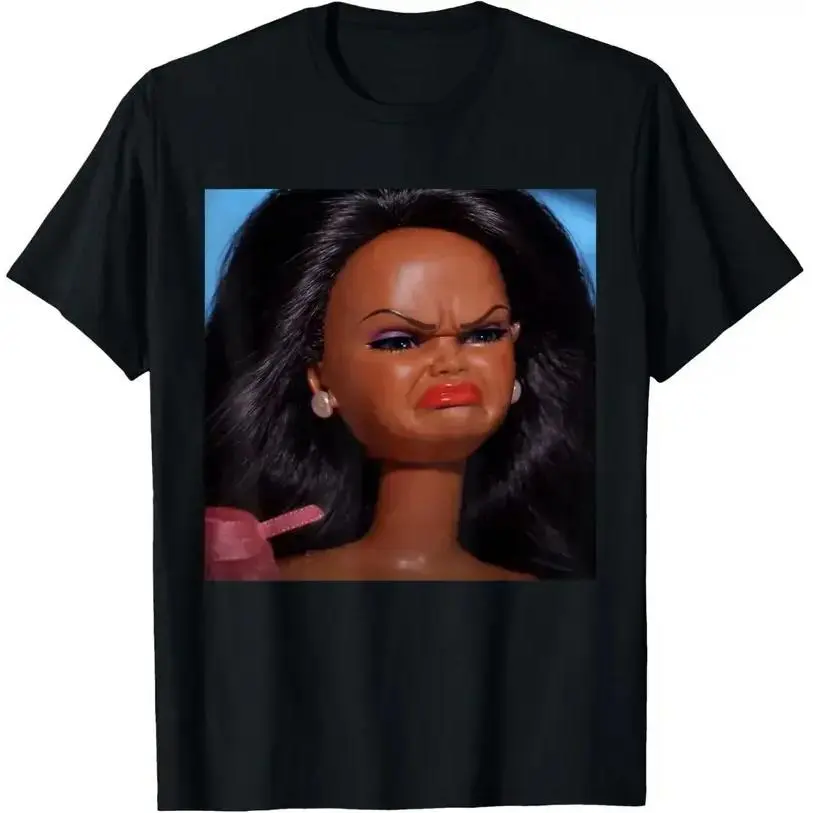 Angry Disgusted Black Doll Face Meme T-Shirt Funny Reaction Tee for Men Soft Breathable 100% Cotton Unisex Casual Tops