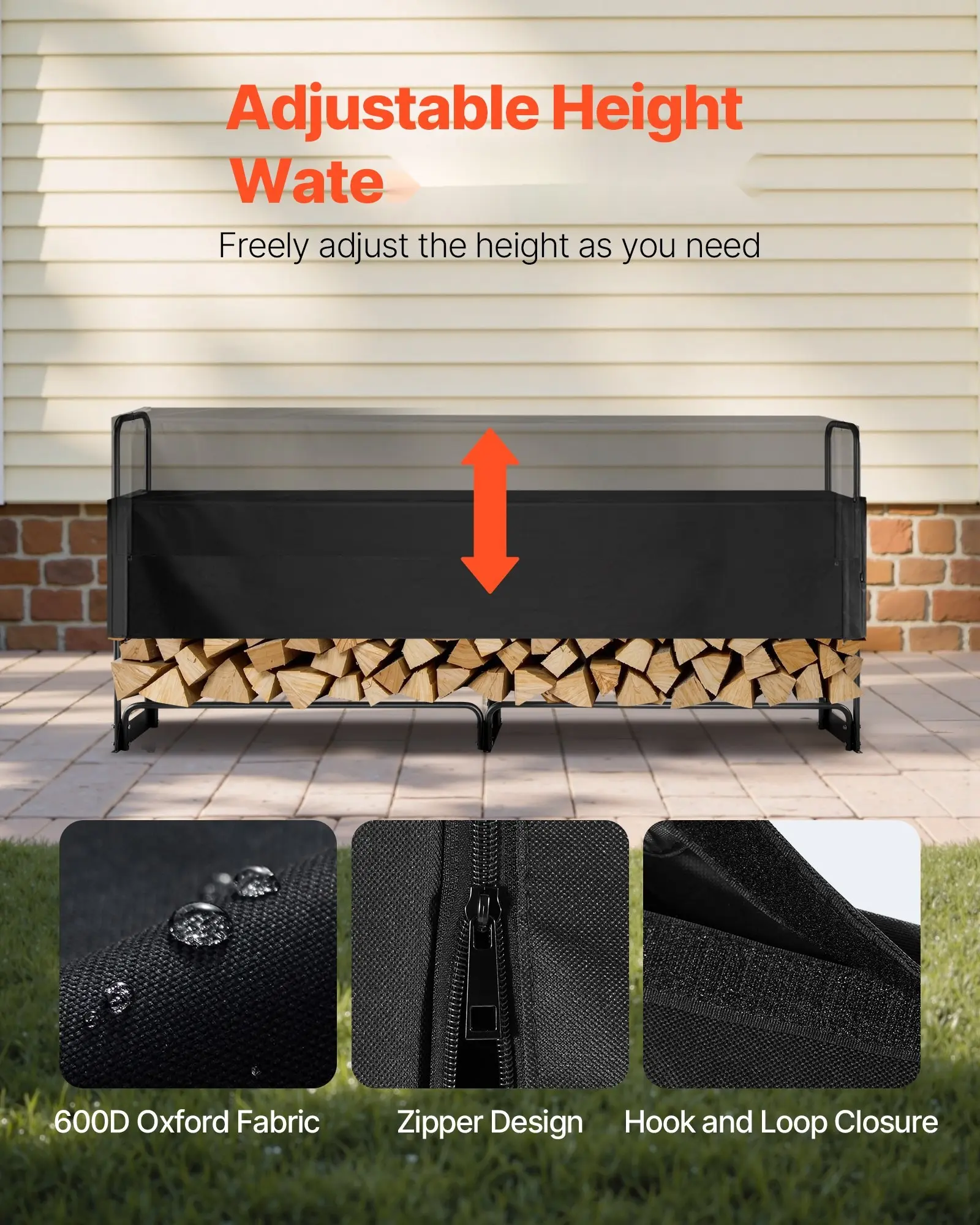 ·Durable Material: The included firewood rack cover is made from 600D Oxford fabric with a PU waterproof coating and UV protection, ensuring it won't crack in extreme heat or cold. This log rack and cover combo keeps your firewood secure from rain, snow, all year roundâno matter the season.
