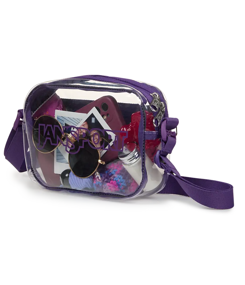 Transparent, but never subtle. The Clear Crossbody was made for good times, great outfits, and zero bag drama at the gate. Made in part with 30% recycled main body material, it's sized for your phone, wallet, tickets, and touch-up kit, with a removable strap and back zip pocket for easy access mid set.