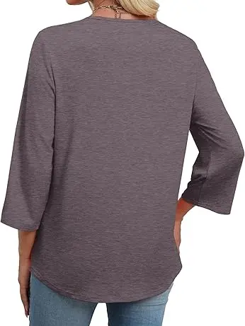 ·Tips-- The 3/4 length Sleeve womens tops are packed with vacuum bag. It may looked wrinkle after open the package. Please wash and iron it to solve the wrinkles before wearing.No Bleach.