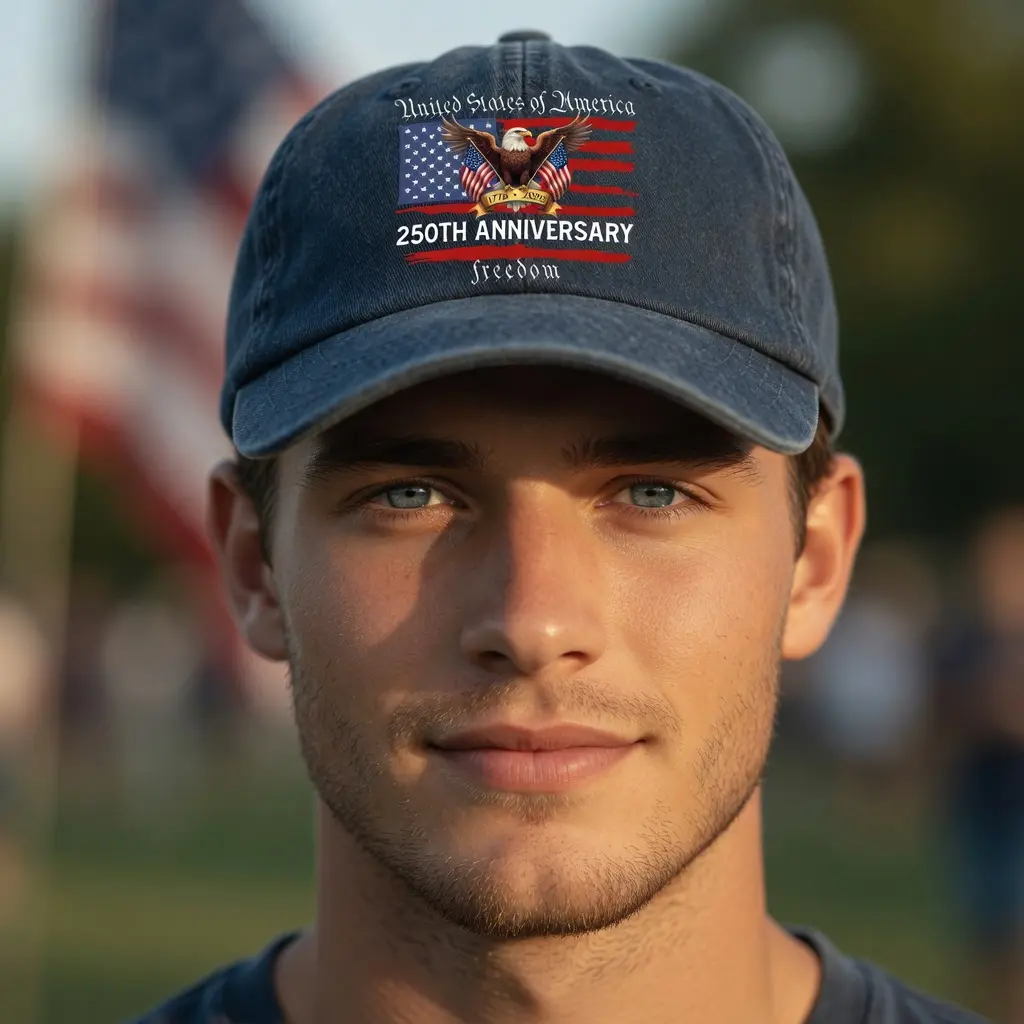 #USA250 #EagleHat #WashedDadHat #PatrioticCap #AmericanStyleHat #VintageHatStyle #FreedomHat #USAHat #FlagCap #IndependenceStyle