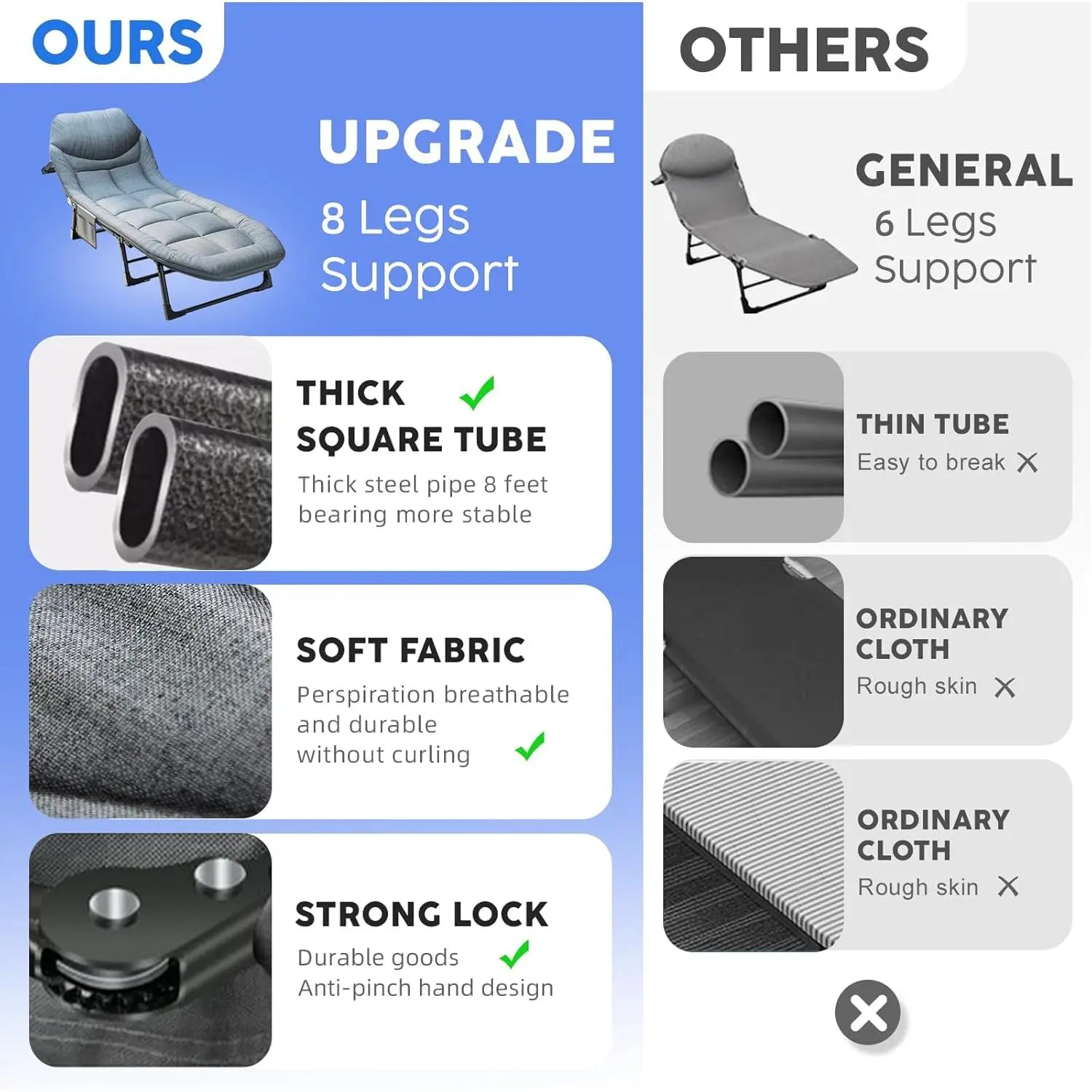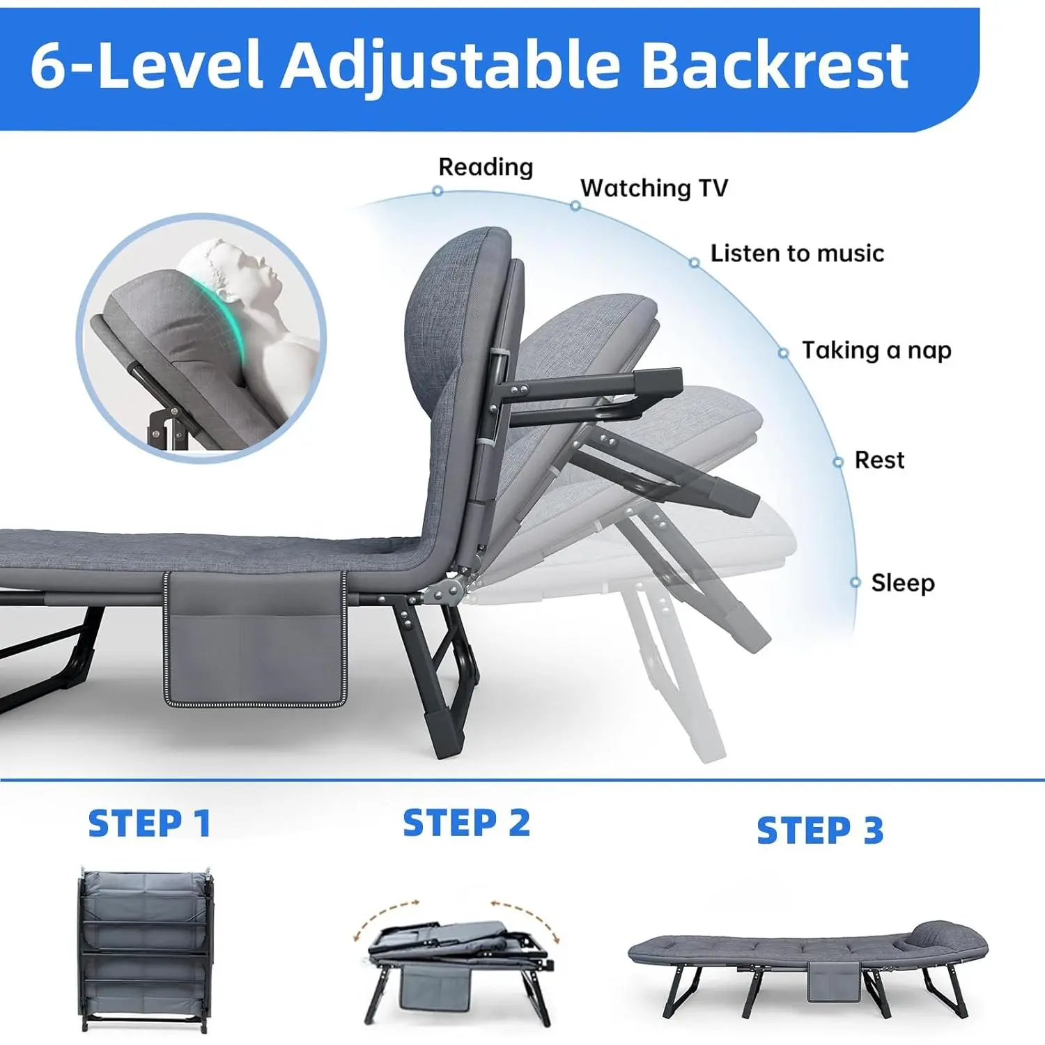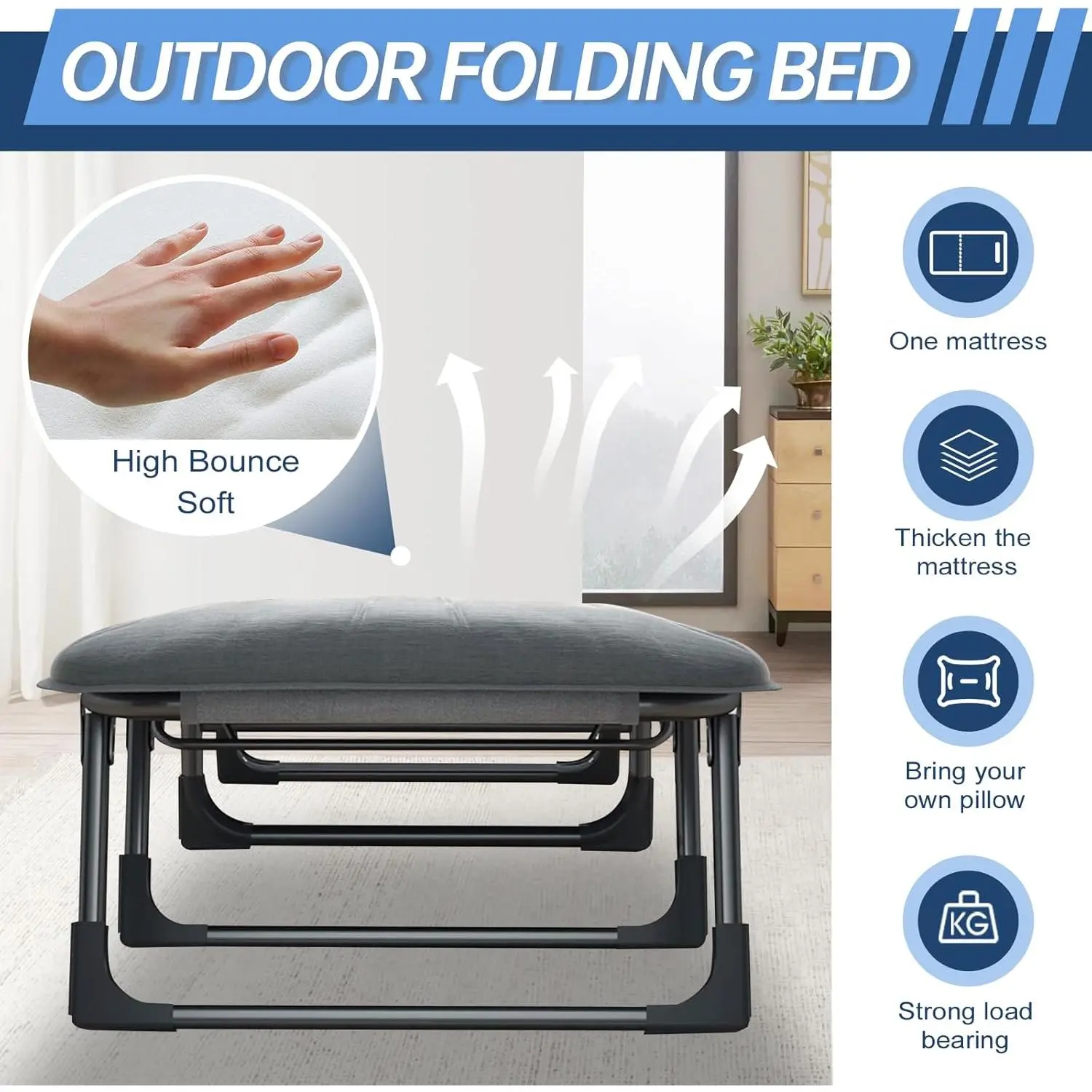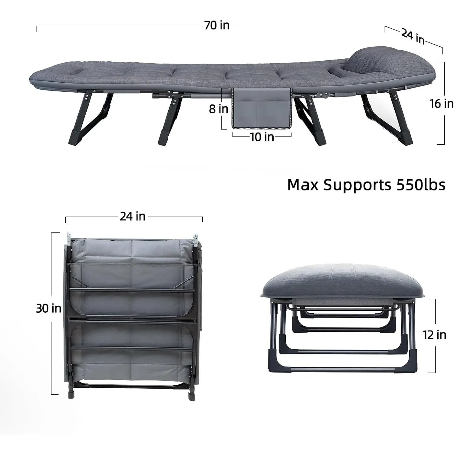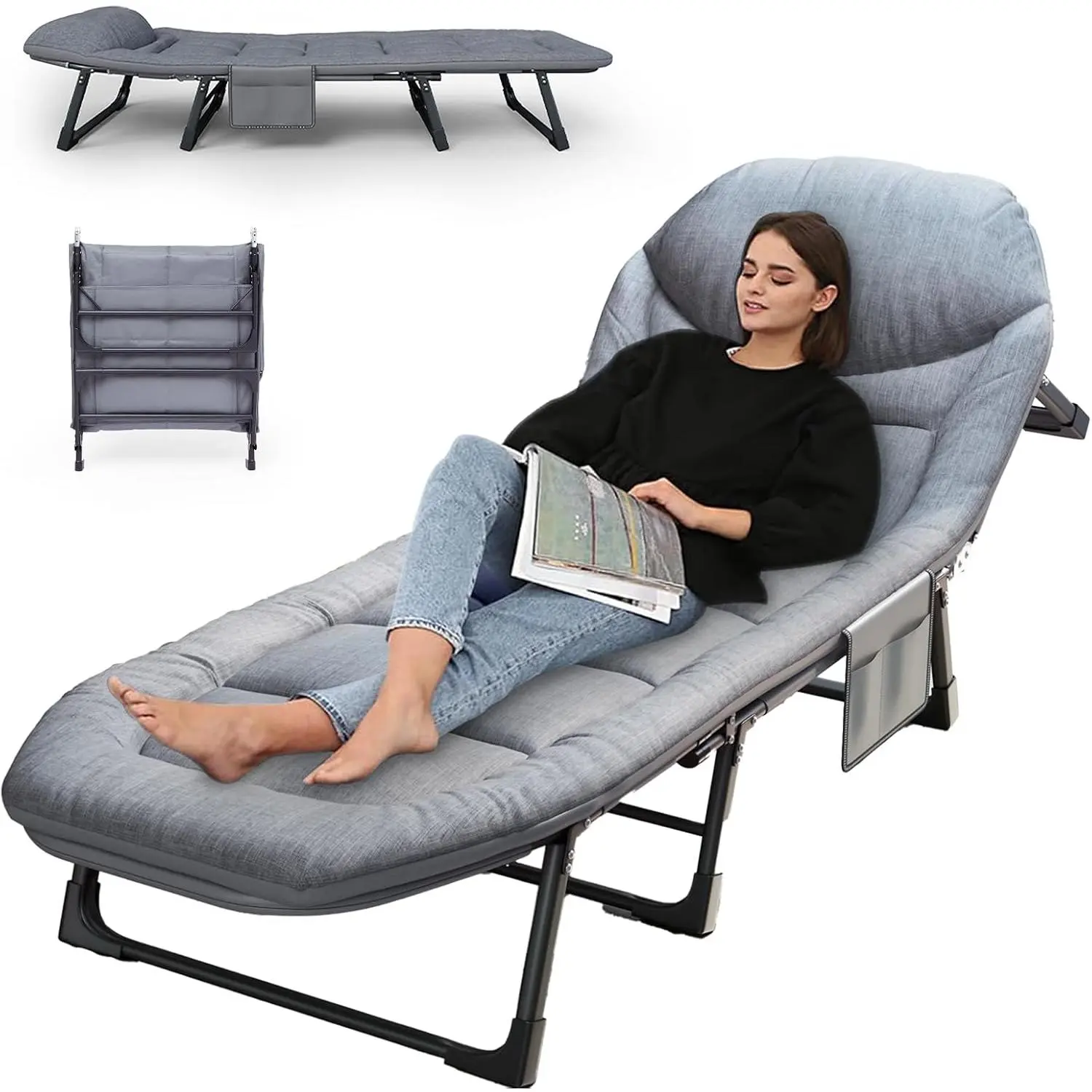 Camping Cot with Mattress, No Assembly Required Heavy Duty Folding Camping Cot for Adults, 550 Lbs Capacity Adjustable Portable Sleeping Bed for Indoor, Outdoor & Patio Use