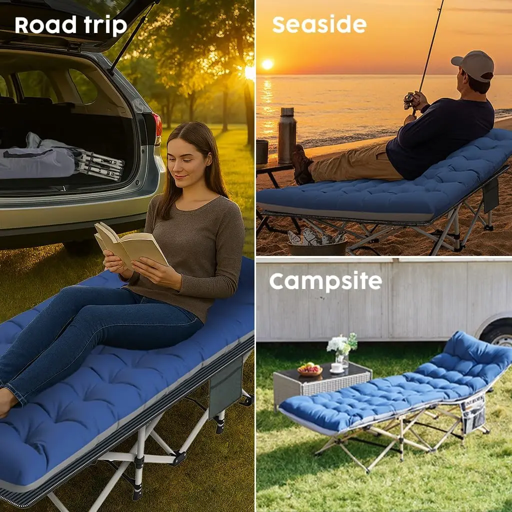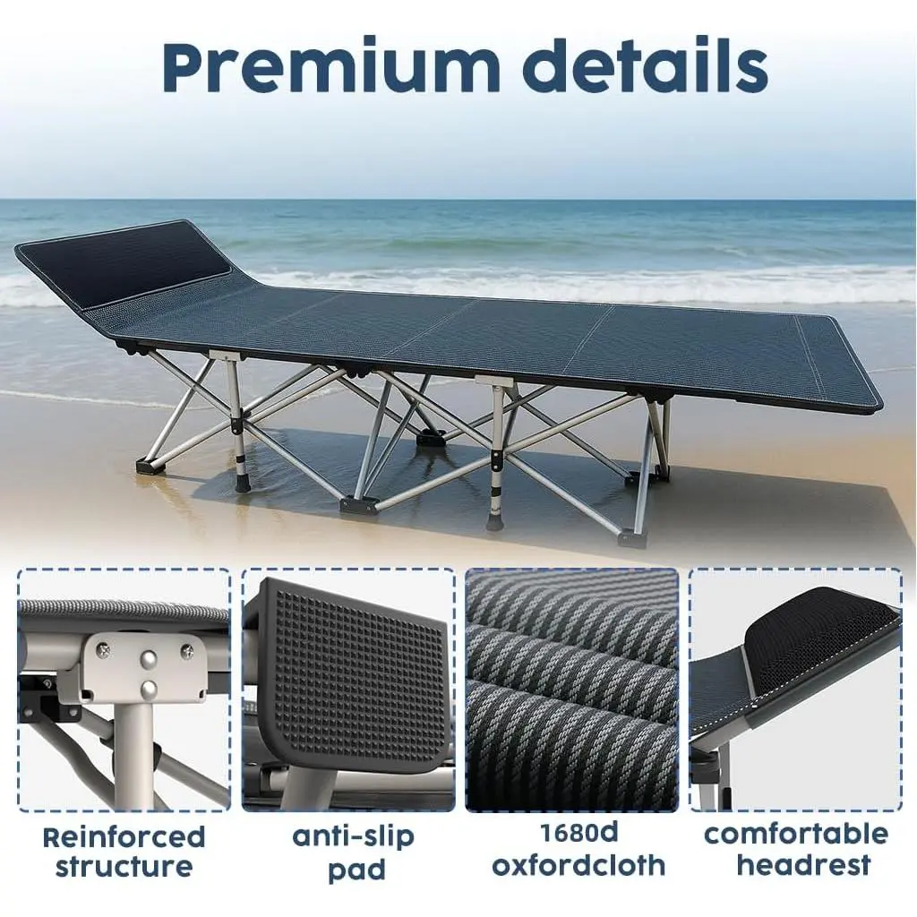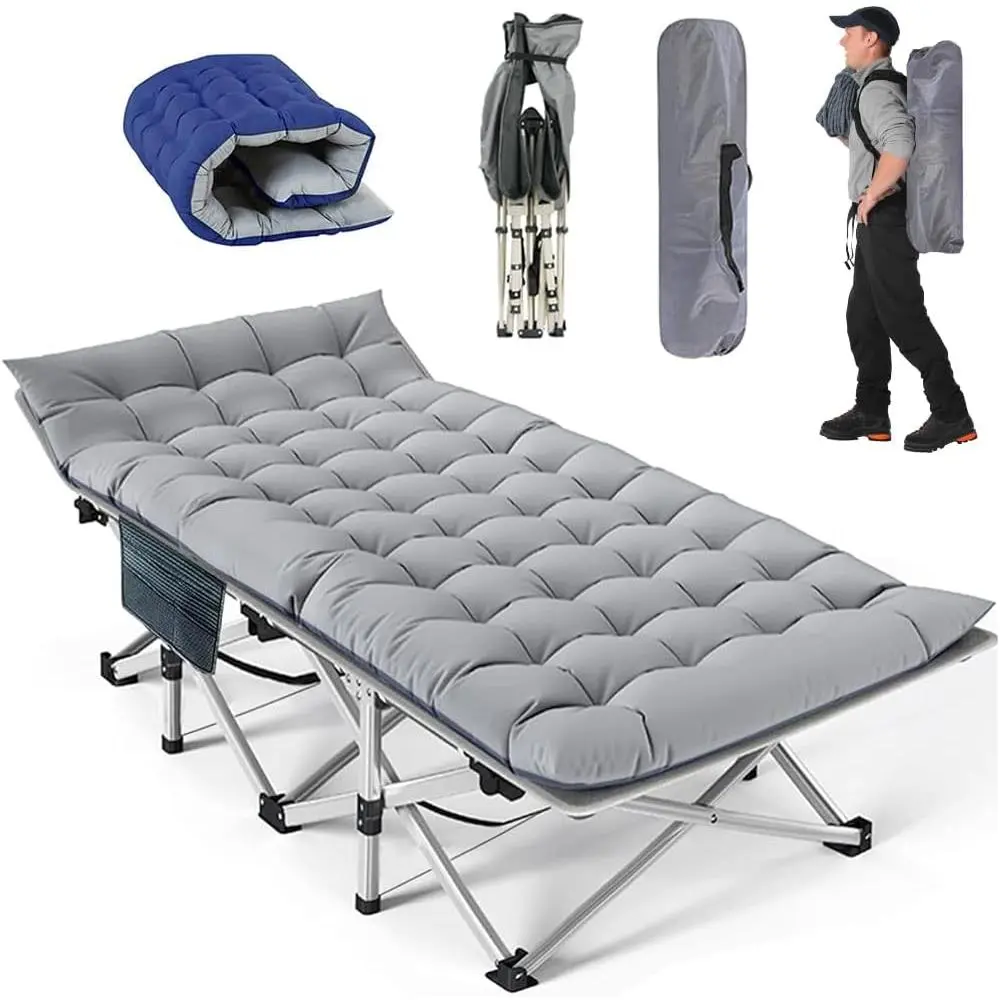 Heavy Duty Camping Cot for Adults with Mattress, 10-Leg Portable Folding Cot Bed, Extra Stable Sleeping Cot for Camping, Travel, Tent & Indoor Guest Use, 500 lbs Capacity