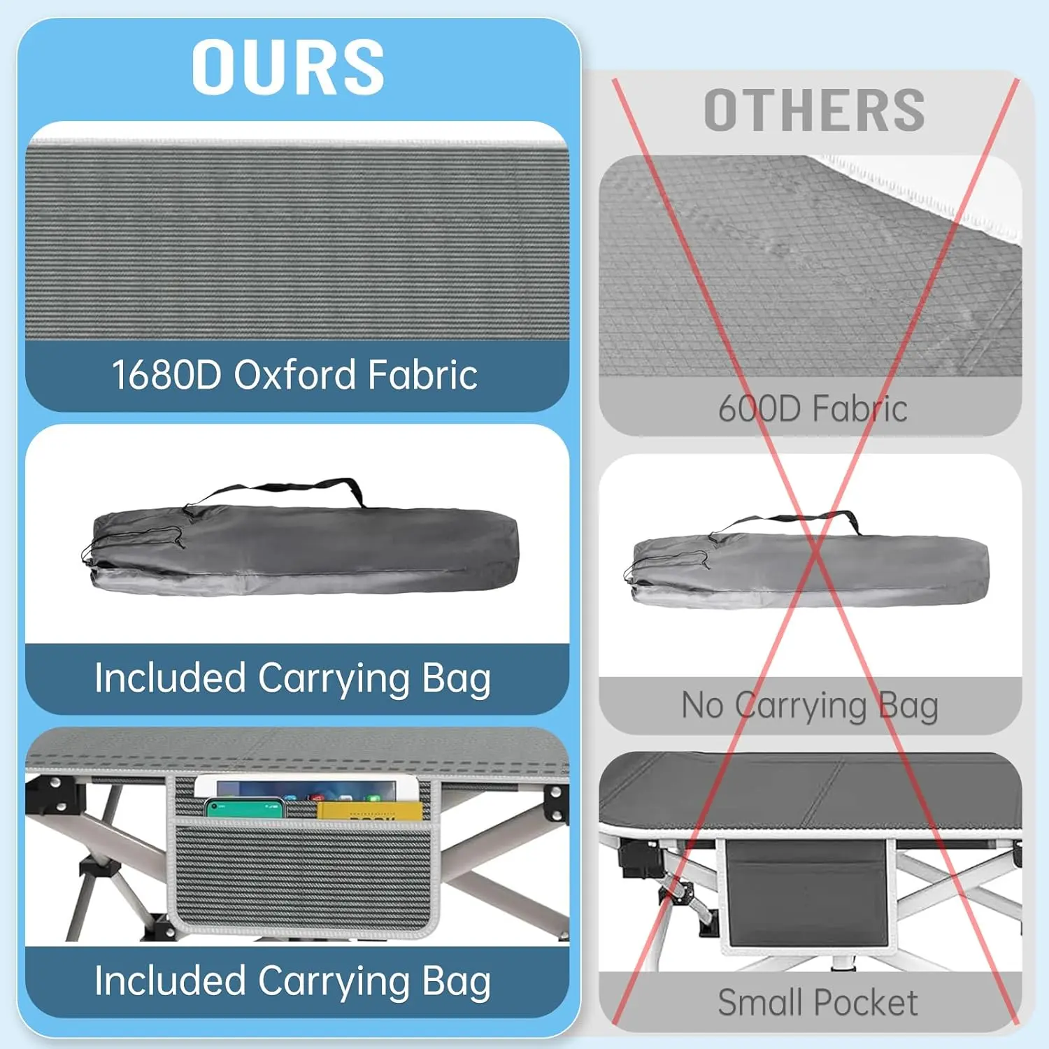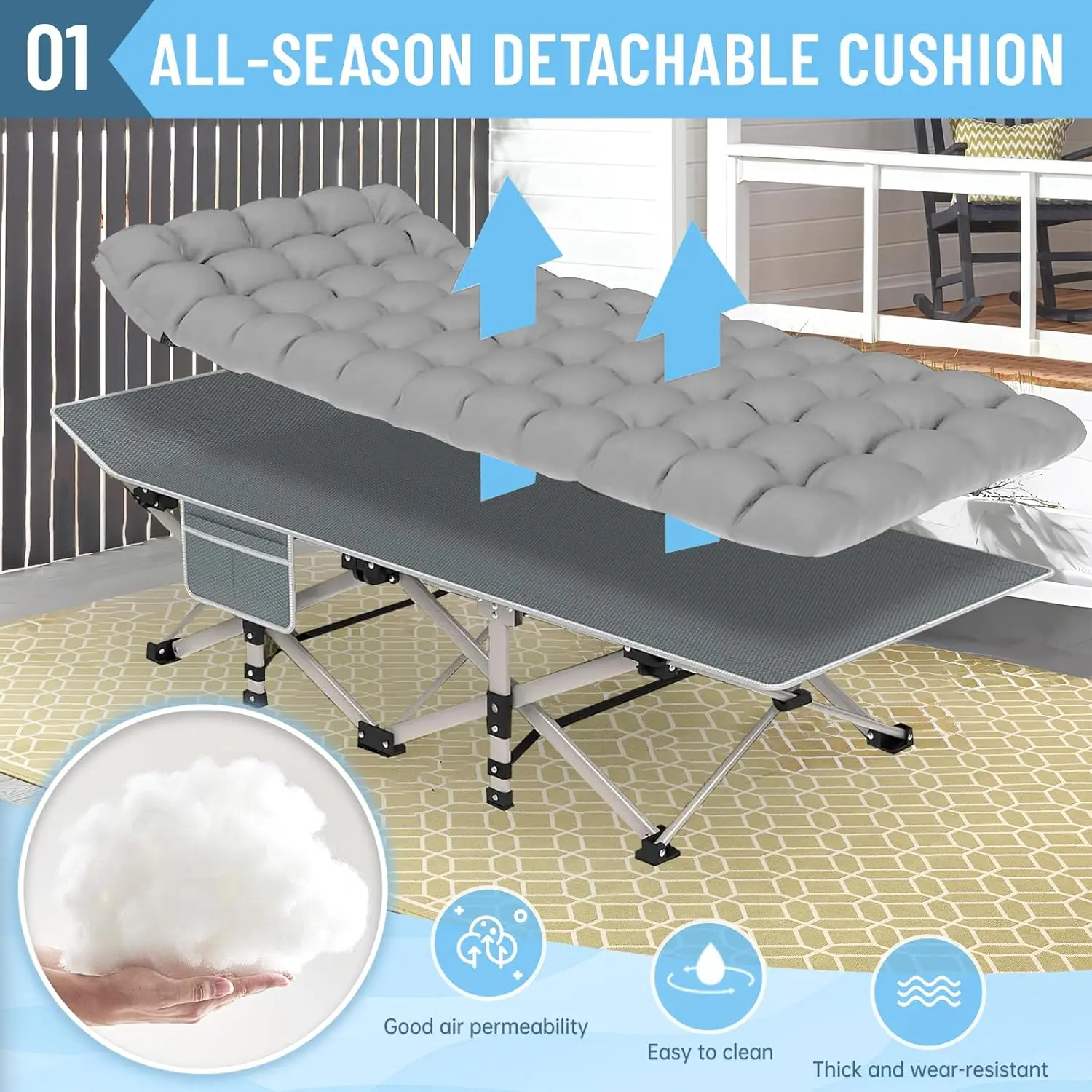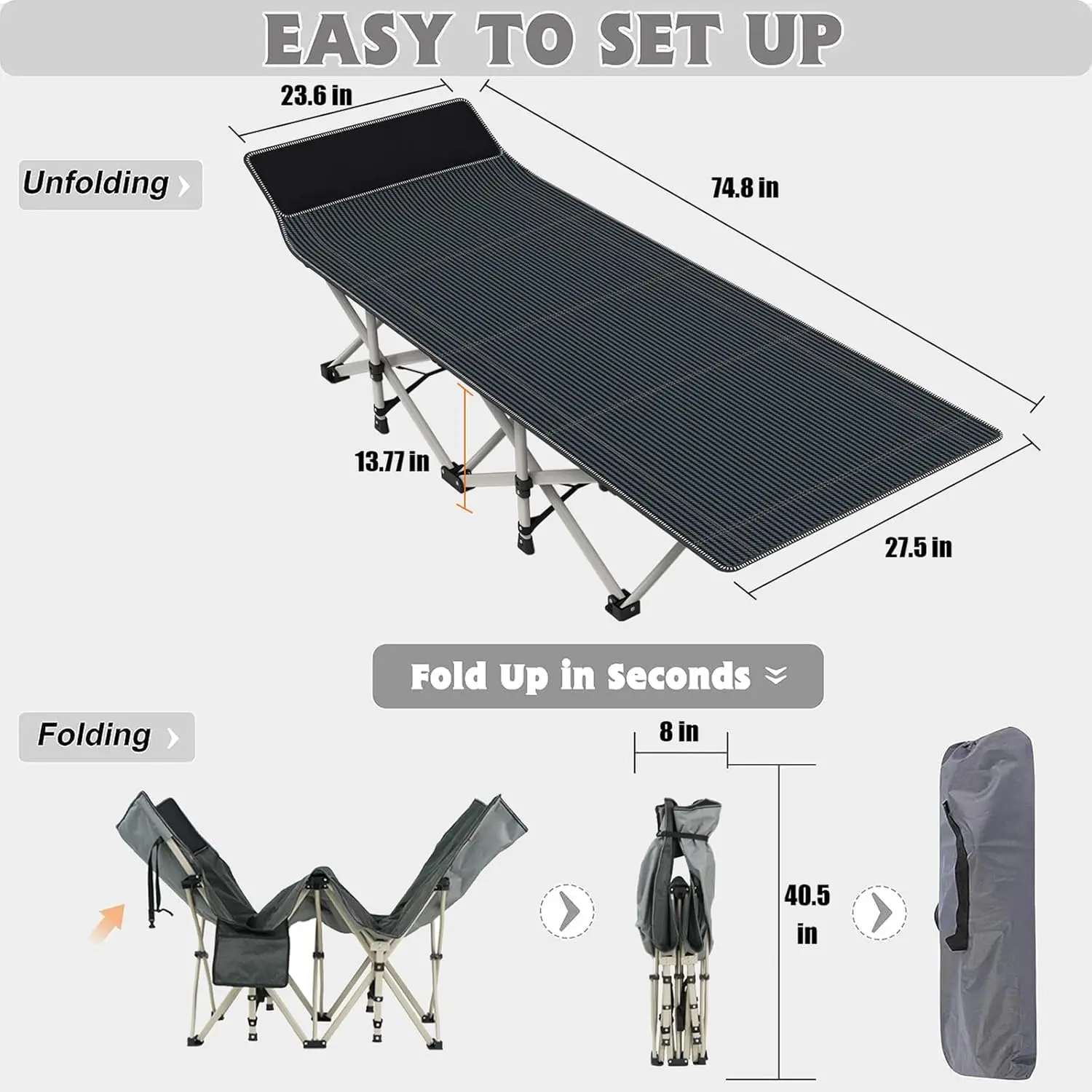 Heavy Duty Camping Cot for Adults with Mattress, 10-Leg Portable Folding Cot Bed, Extra Stable Sleeping Cot for Camping, Travel, Tent & Indoor Guest Use, 500 lbs Capacity