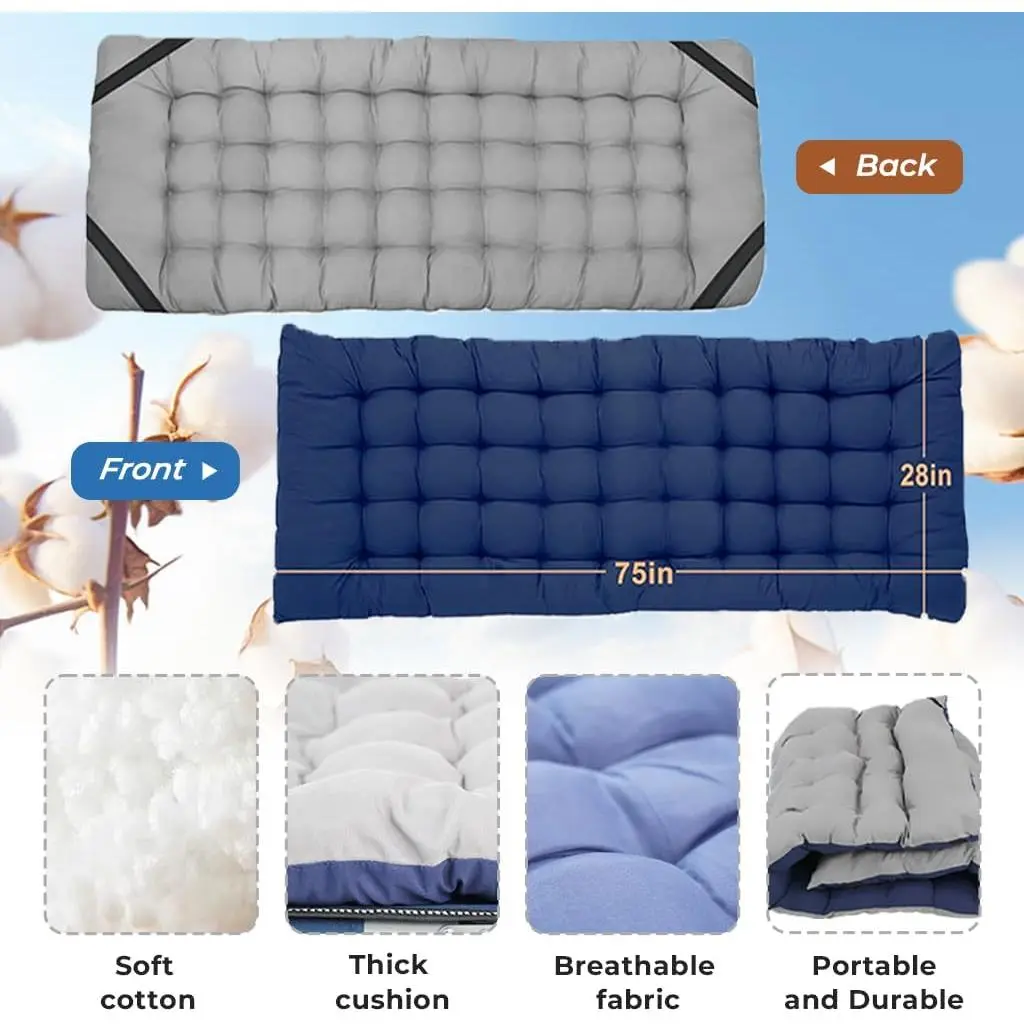 Folding Mattress, Tri-fold Memory Foam Mattress Topper for Camping, Foldable Mattress Topper with Washable Cover, Various Sizes, White