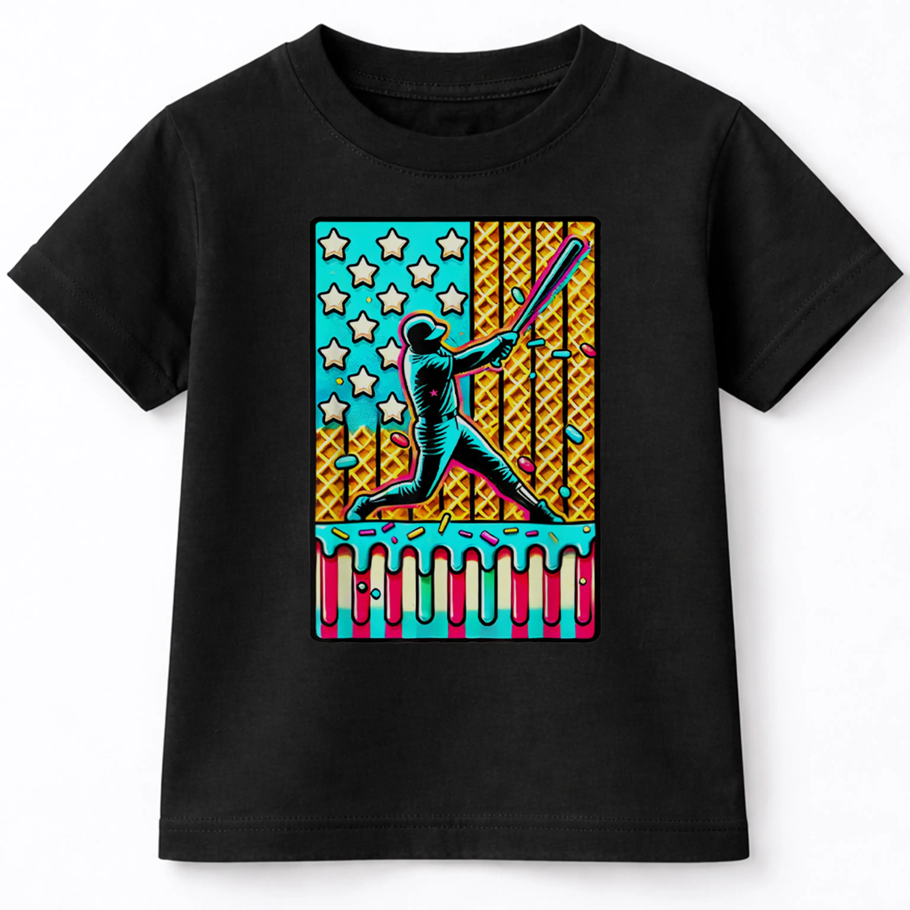 Ice Cream Drip Baseball Stuff Drip for Boys American Flag T-Shirt For Young Boys Girls T-shirt Crewneck Light Cotton