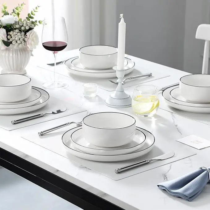 Elevate everyday dining with this 12-piece plates and bowls dinnerware set, thoughtfully designed to blend durability with modern style. Crafted from high-quality, chip-resistant ceramic (or porcelain), each piece is made for long-lasting everyday use while maintaining a refined, timeless look for your table.