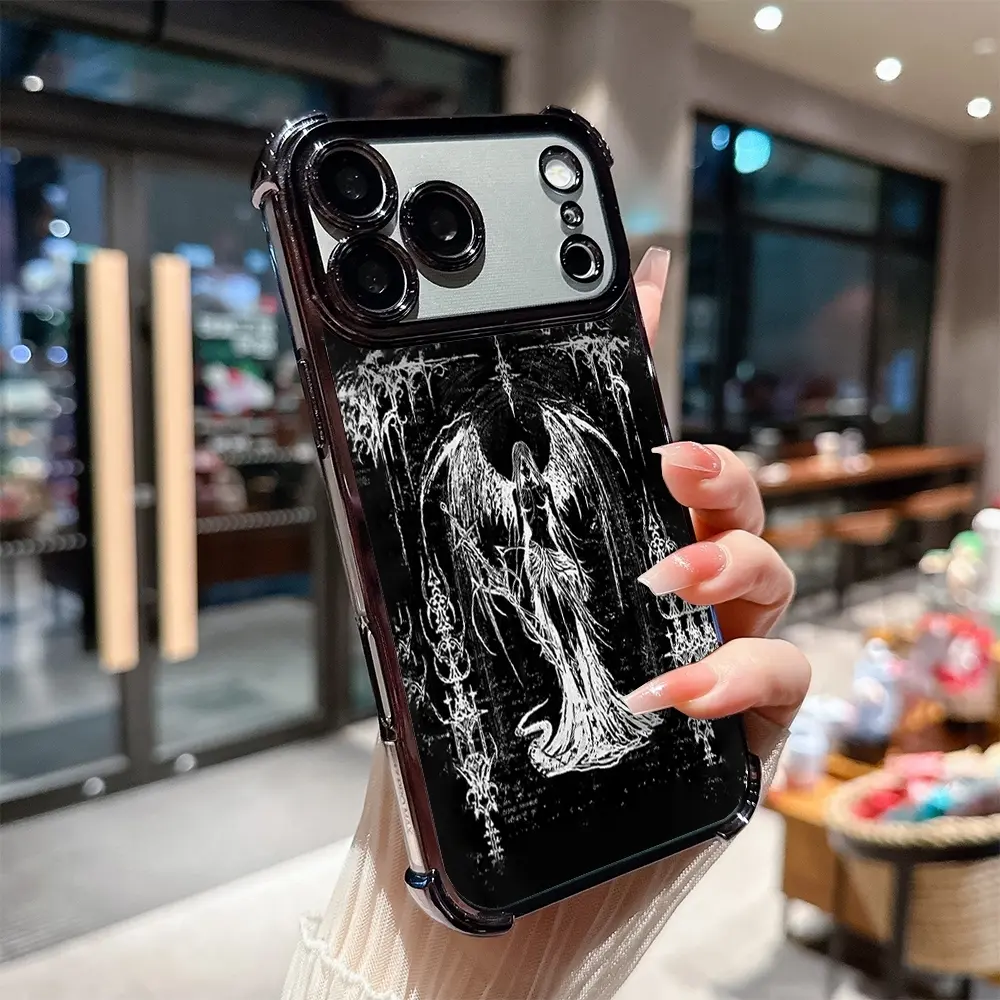 5. Phone Case for iPhone 17 Pro Max Air 16 15 14 13 12 11 Plus Gothic fallen angels Pattern Four Corner Anti-Fall Phone Case Transparent Electroplated Protective Cover
