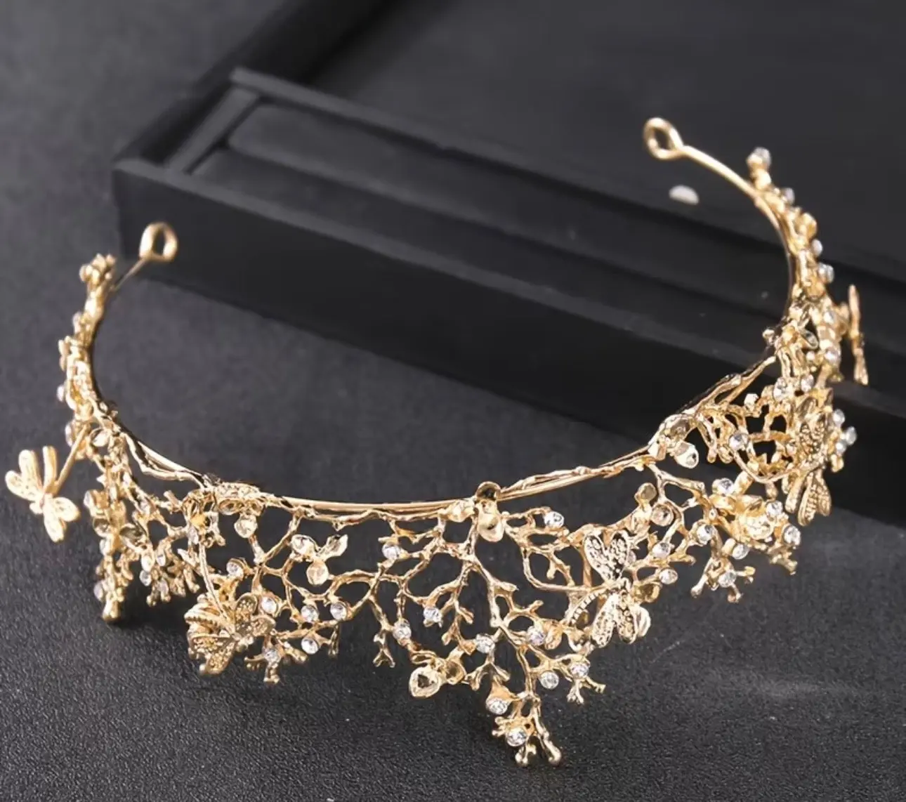 Butterflies grace this ethereal gold crown. Perfectly whimsical and fit for royalty.