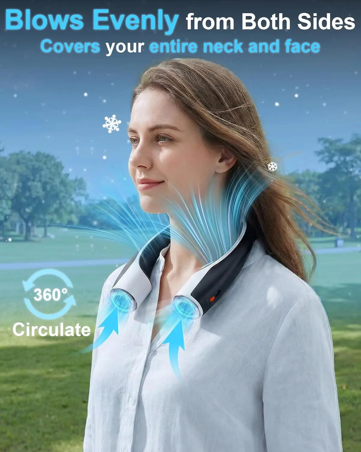 ·360° Cooling Design – Featuring strategically placed air vents, the Rohent Q1 Neck Fan provides 360° cooling around your neck and face. Enjoy consistent airflow from every angle, keeping you comfortable and refreshed in any environment