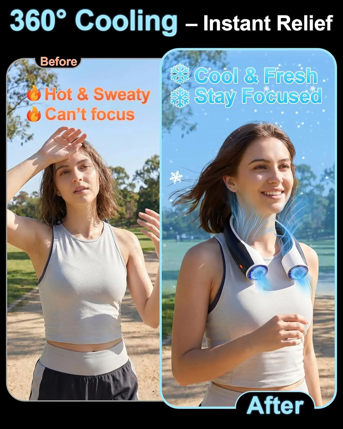 ·Turbo Fan Technology & Strong Airflow – Designed with advanced turbine technology, the Rohent Q1 provides powerful, focused airflow. Its dual turbo fans ensure quick cooling, even in sweltering heat, making it the ideal companion for summer outings or high-intensity activities
