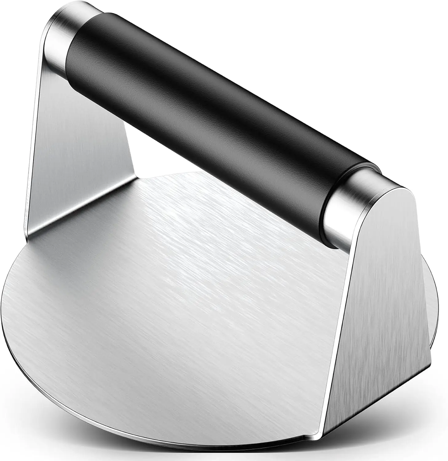 The 2.5mm thick solid stainless steel base provides even pressure for perfectly smashed patties, helping seal in juices and enhance flavor. The upgraded silicone heat-resistant handle offers a safe, comfortable grip and protects your hands from heat during cooking.