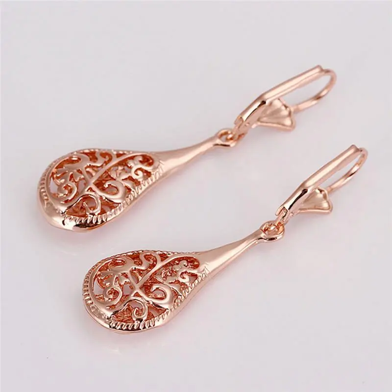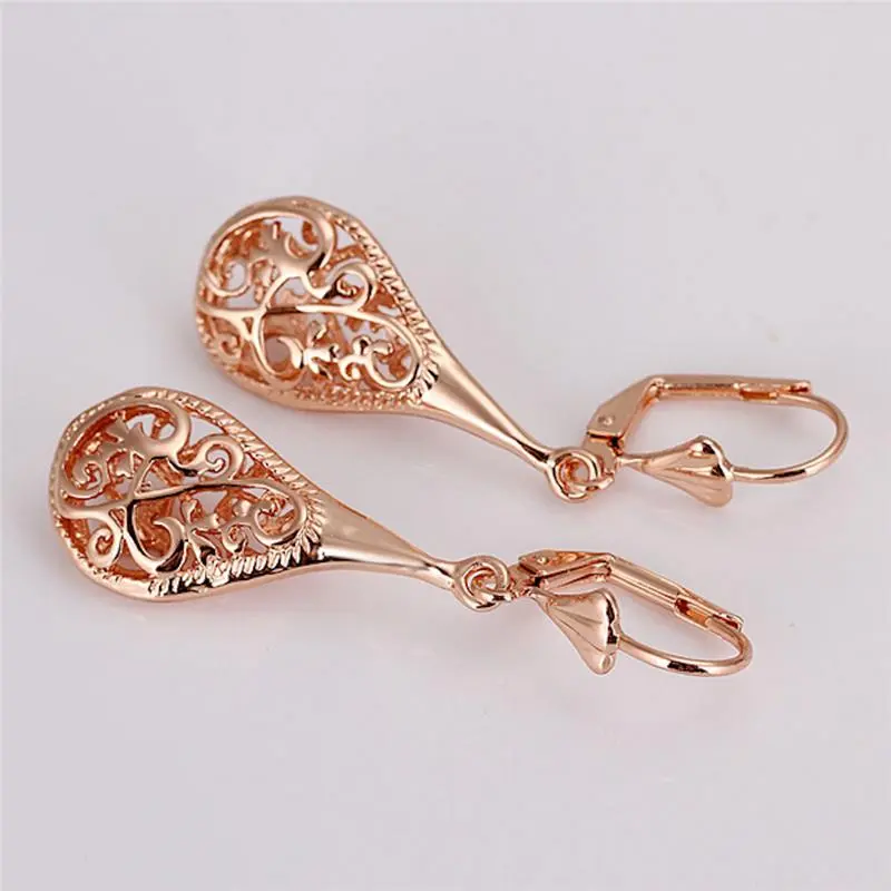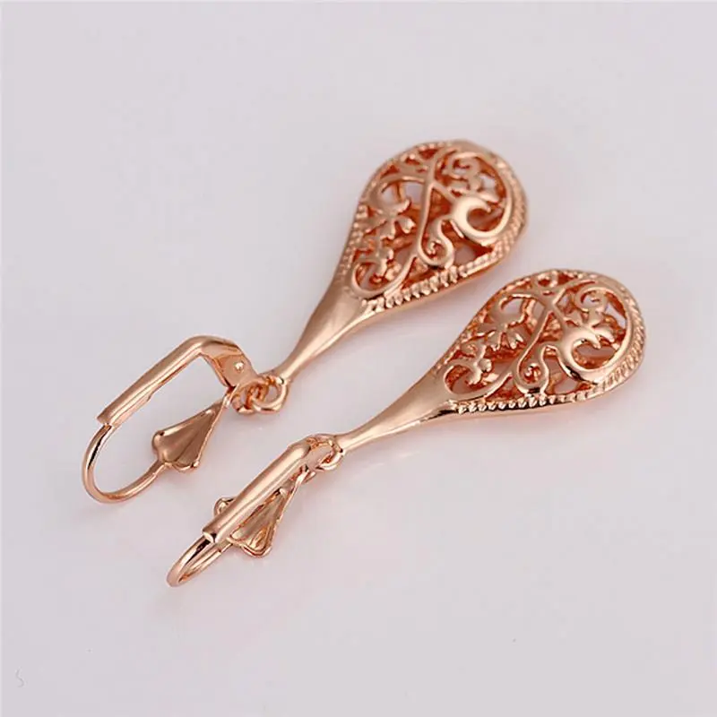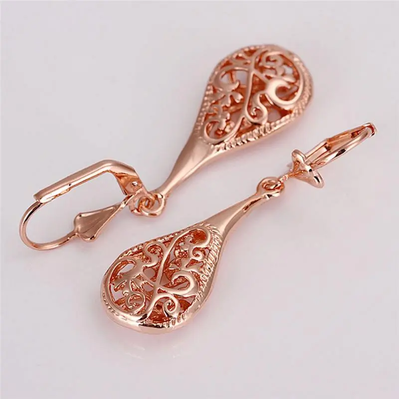 18K Rose Gold Filigree Teardrop Lever Back Drop Dangle Earrings L130