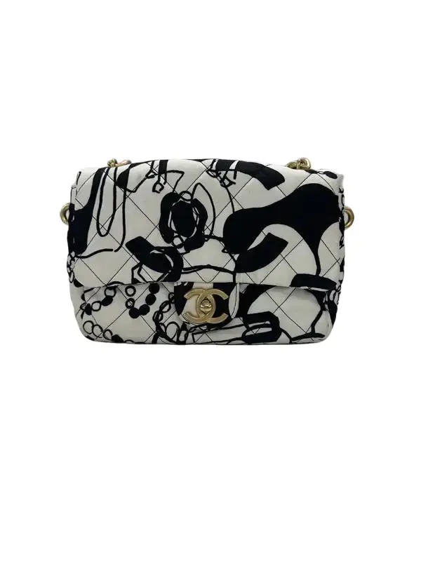 Pre-owned CHANEL canvas Shoulder Bags Black White Deer Mini Single Flap Shoulder Bag IB26010067