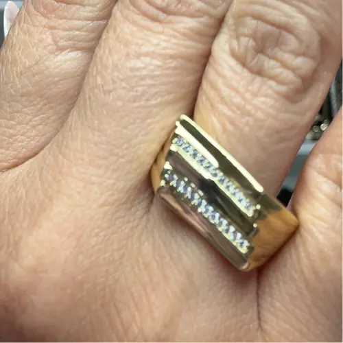 Men's Titanium Wedding Band Engagement Ring 9 Large Cubic-Zirconia Goldtone