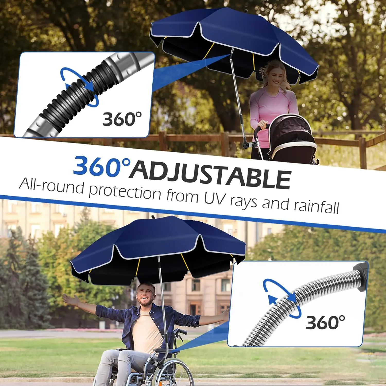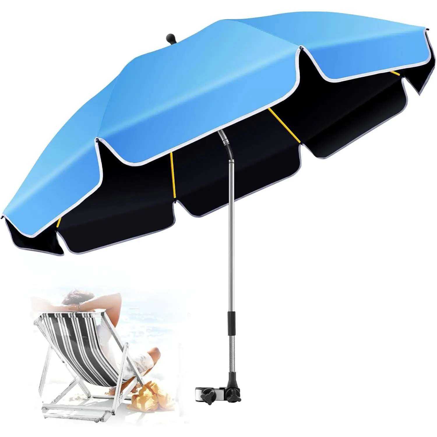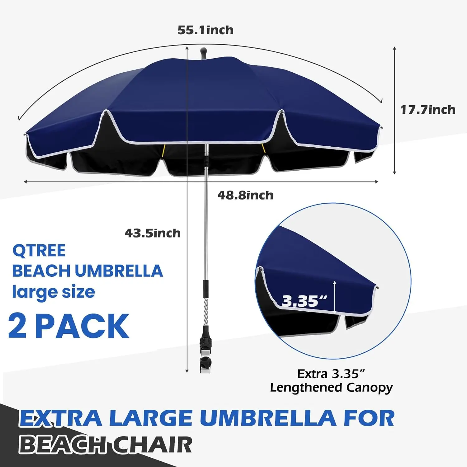 2PACK 48.8 inch Large Beach Umbrella with Clamp Sun Shade for Beach Chair,360 ° Adjustable UV Protection Golf Umbrella with Clip for Outdoor Stroller Wheelchair Camping Chair