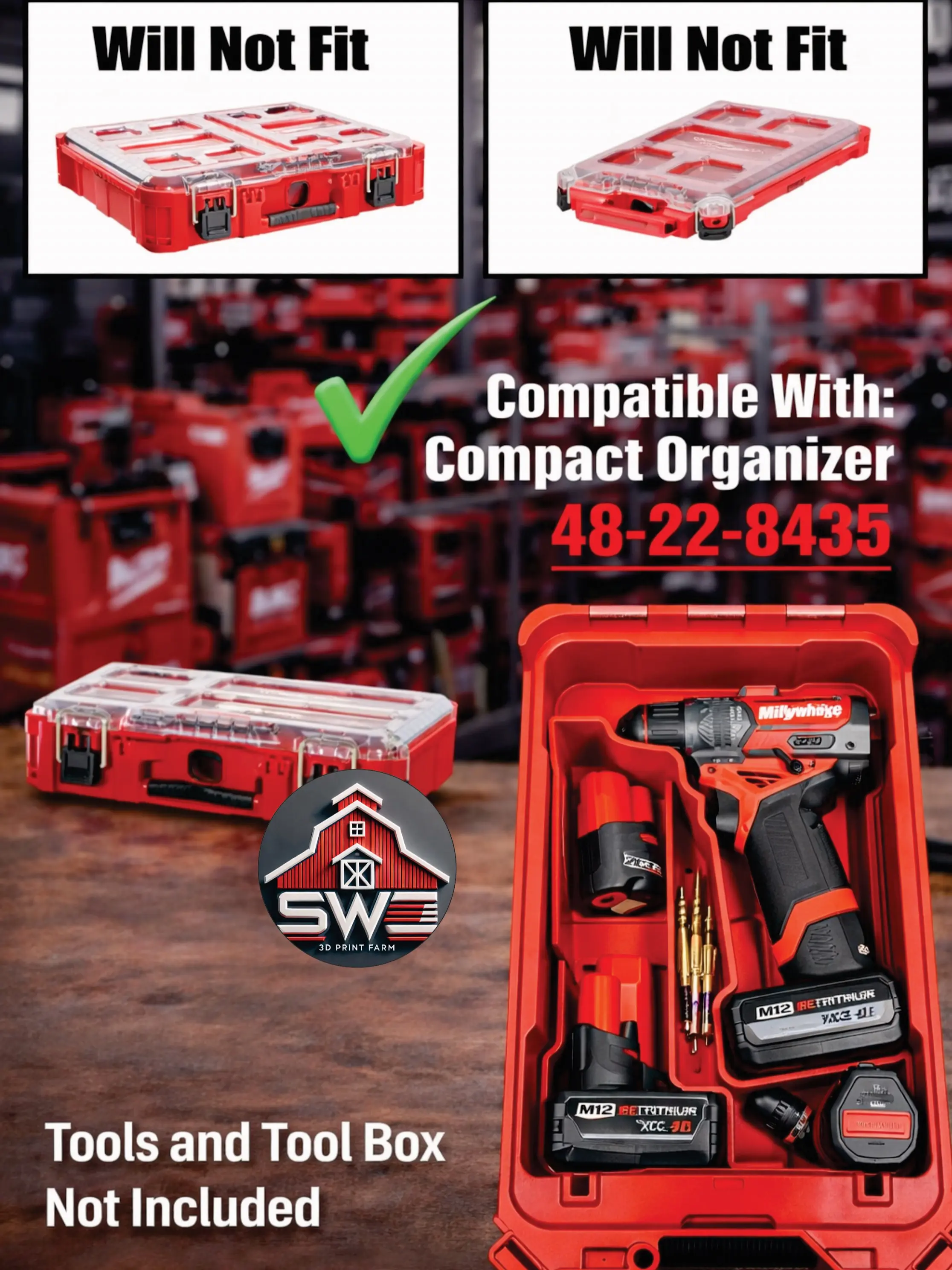 • Compatible with Milwaukee Packout Compact Organizer 48-22-8435
