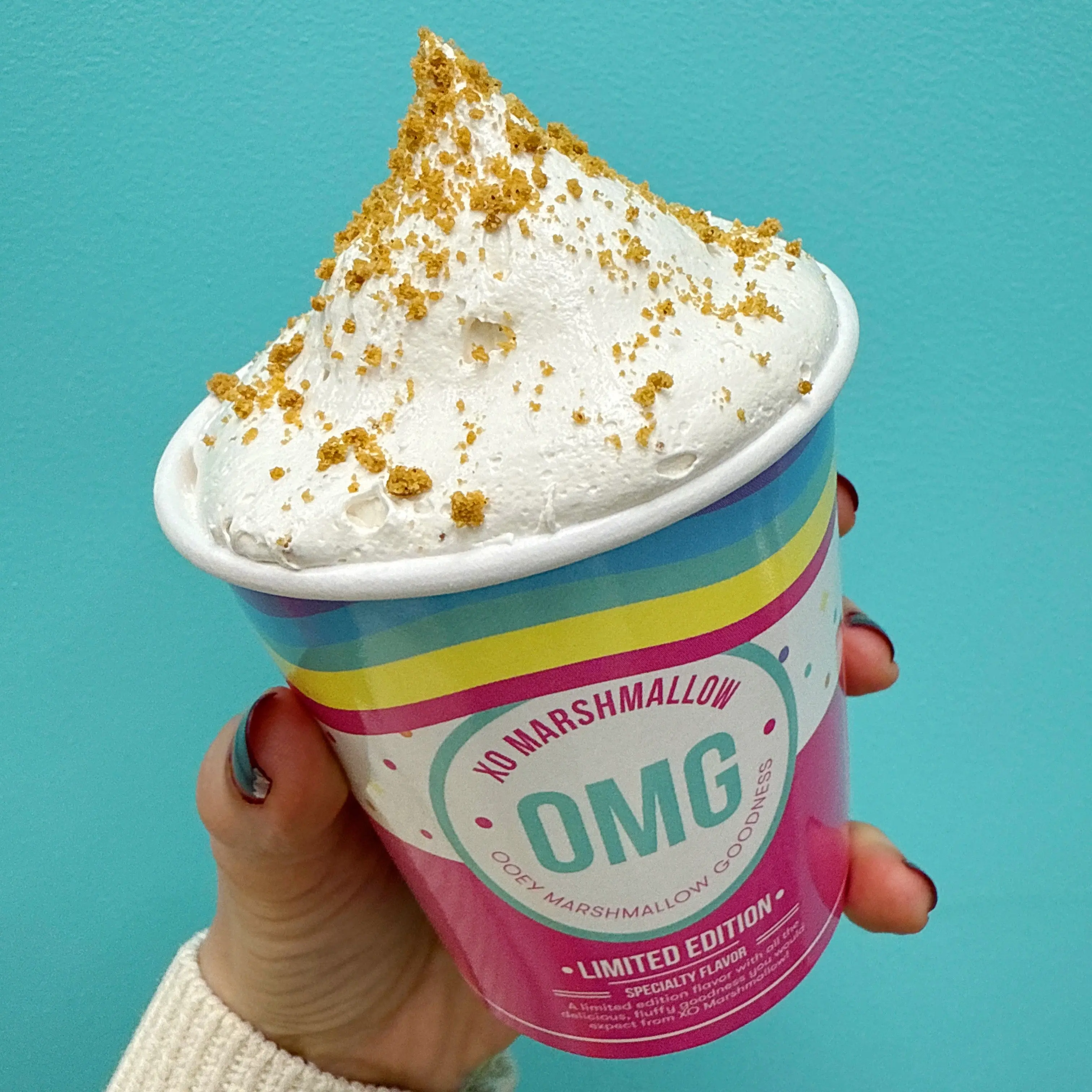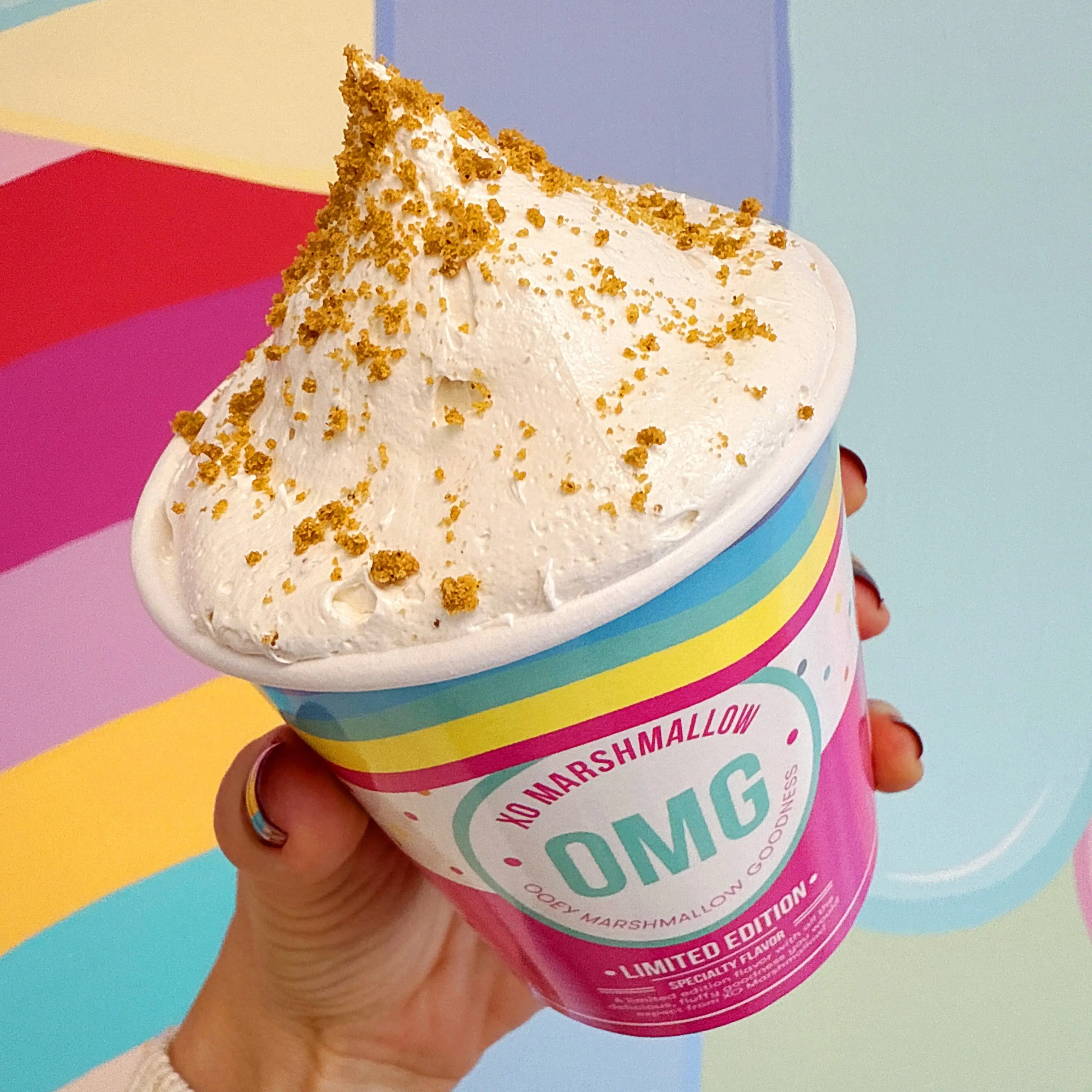 Our Ooey Marshmallow Goodness is our version of marshmallow creme -- a sticky, sweet spreadable marshmallow treat that is perfect for dips, dunks, and desserts of all kind. We love to keep our pints in the fridge or freezer (fluff ice cream anyone?) but you can keep them at room temp too!