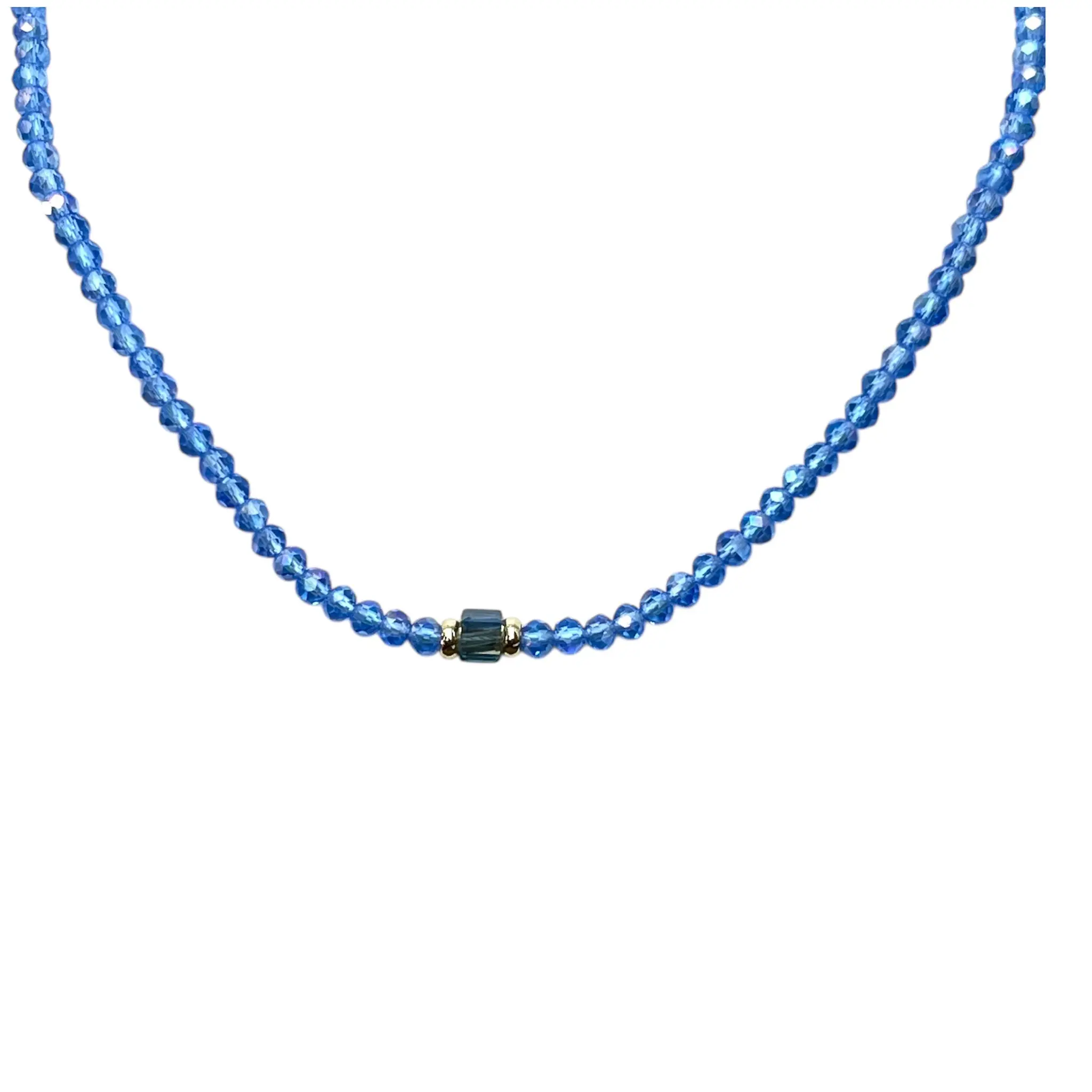 Dive into a splash of sparkle with the Blue Mirage Beaded Necklace! Its electric blue beads catch the light like sun-kissed waves, while a chic navy baguette bead steals the spotlight at the center. Gold-toned accents add a touch of glam without fuss, and hypoallergenic, tarnish-free materials keep it comfy and shiny all day long. Perfect for adding a dreamy pop of color to any outfit!