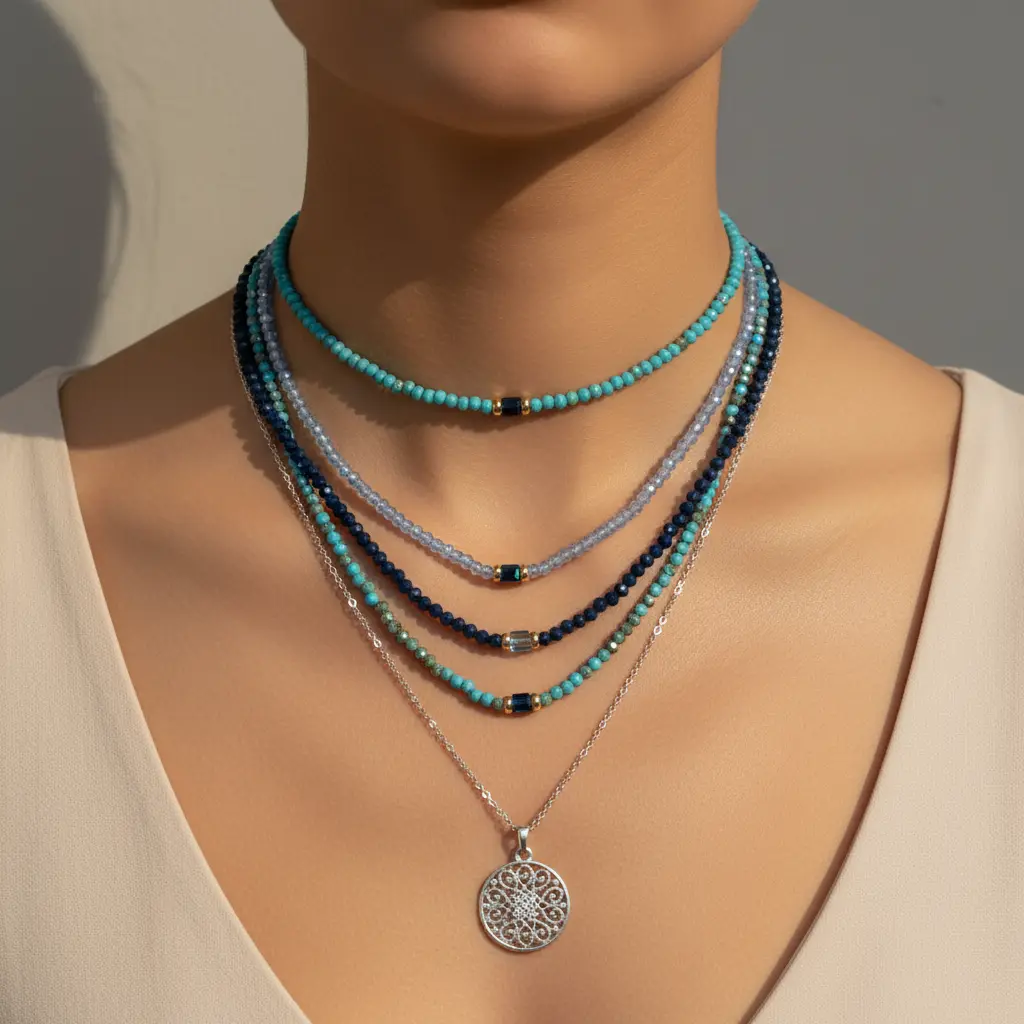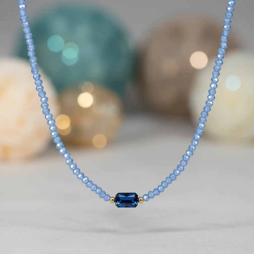 Add a playful sparkle to your everyday style with the Azure Gleam Necklace-Gold. This 16" necklace, extendable by 2", showcases shimmering sky blue faceted glass beads and a striking deep teal cube bead at its center, highlighted by gold-toned hypoallergenic spacers. Lightweight and tarnish-free, it’s gentle on sensitive skin and keeps its shine day after day. Perfect for layering or wearing alone, it brings a radiant, subtle pop of color to any outfit.