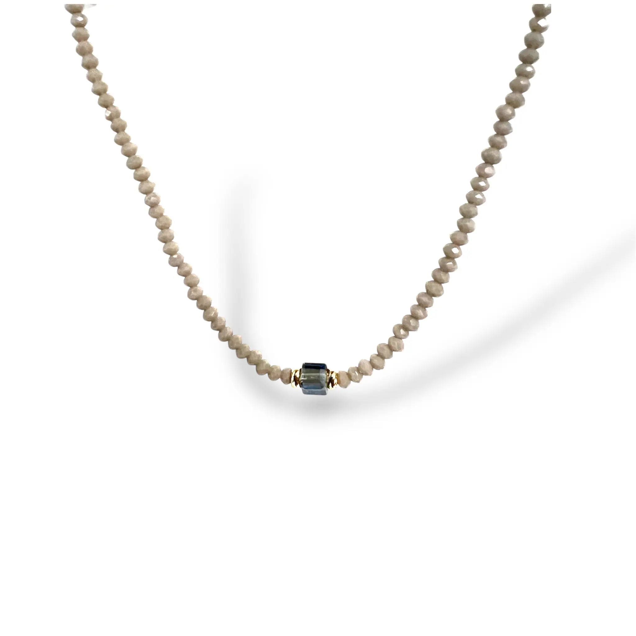 Add a dash of moonlight magic to your style with the Moonlit Mist Necklace! Soft grey faceted beads sparkle like shimmering water, while a bold teal baguette bead steals the spotlight, hugged by delicate gold-toned accents. At 16" with a 2" extender, this hypoallergenic, tarnish-free necklace is as comfy as it is charming—perfect for layering or shining solo with a playful twist.