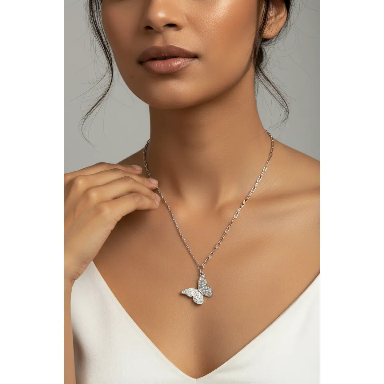 The Dancing Wings Butterfly-Gold necklace brings a playful sparkle to your look with its delicate roduim-plated chain and shimmering butterfly pendant. Lightweight and hypoallergenic, it’s designed for comfort and charm, perfect for brightening everyday outfits or adding a whimsical touch to special moments. With its hand-cast details and adjustable lobster clasp, this necklace celebrates transformation and beauty in a fun, feminine way.