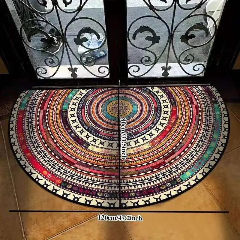 Infuse your living space with free-spirited bohemian flair with our Boho Style Semicircular Door Mat! Meticulously designed with eye-catching boho graphic prints, this versatile floor rug combines artistic aesthetics, unbeatable comfort, and practical functionality. It’s an ideal decorative accent to transform entryways, living rooms, bedrooms, kitchens, and more, adding a warm, cozy, and stylish touch to every corner of your home. Whether you’re revamping your interior decor or looking for a functional yet beautiful floor covering, this semicircular rug is a standout choice for modern homes.
