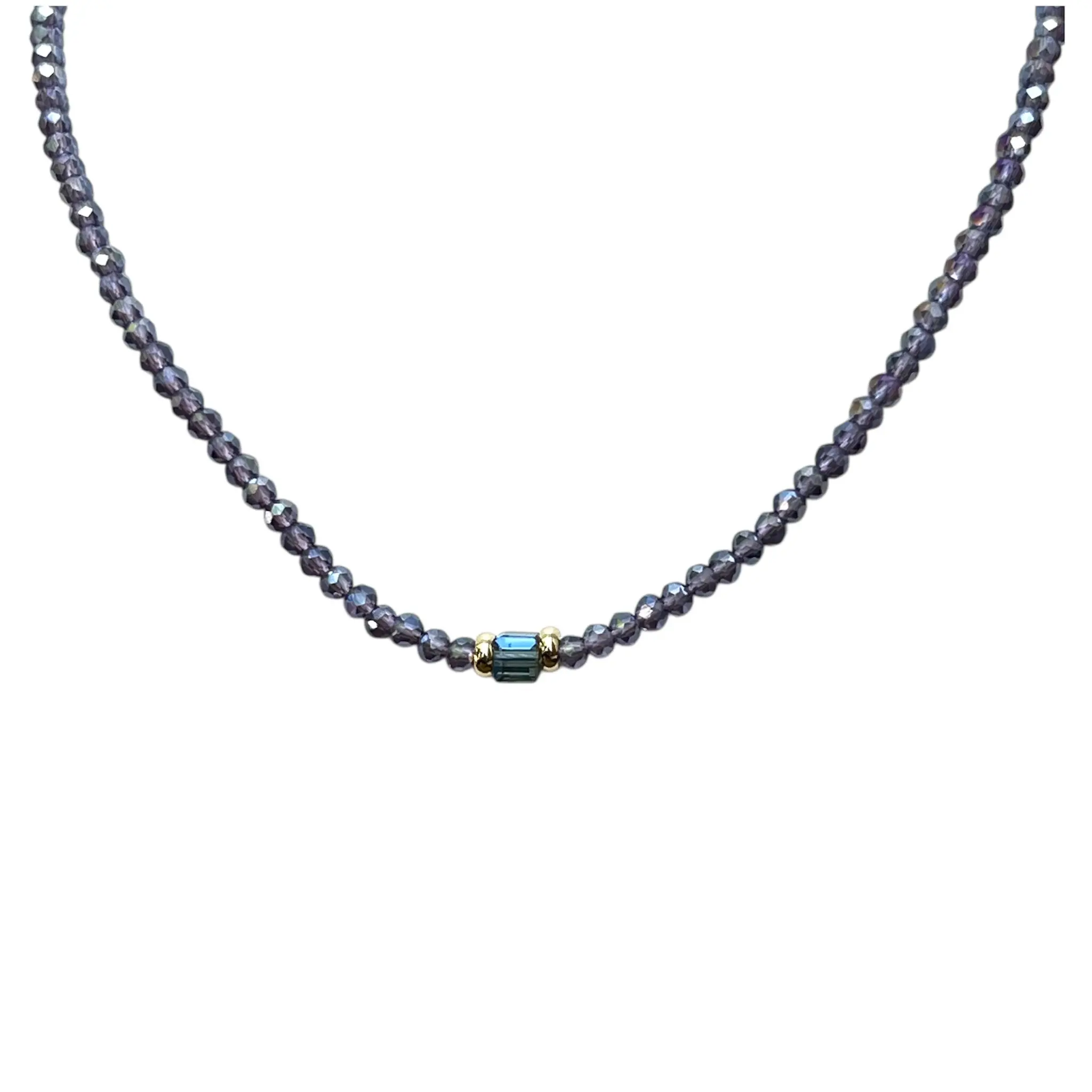 The Twilight Glint Necklace dazzles with shimmering glass beads that echo the magic of dusk. Its bold teal baguette centerpiece, framed by gold-toned hypoallergenic spacers, creates a striking contrast that’s both playful and chic. At 16" with a 2" extender, this tarnish-free necklace is gentle on sensitive skin and perfect for layering or shining solo. Add a touch of twilight sparkle to your look with this modern, eye-catching piece.