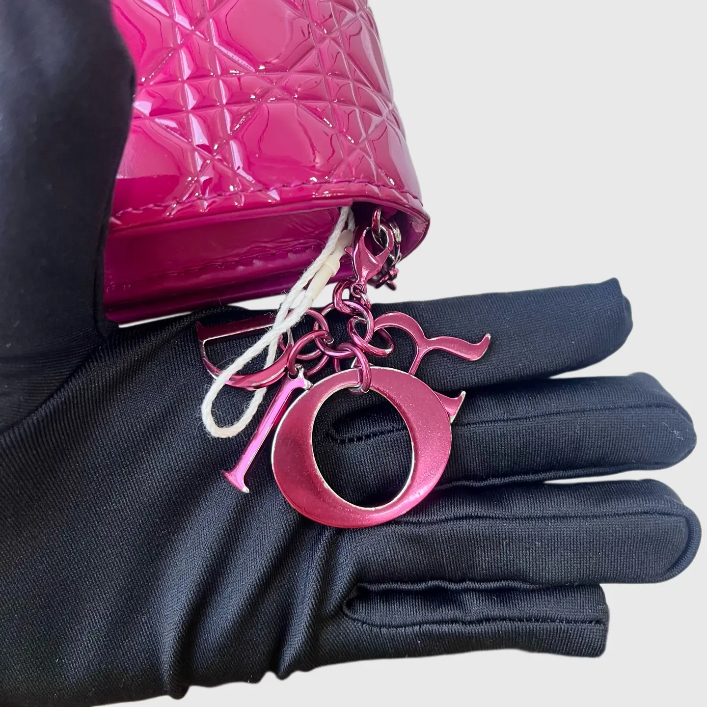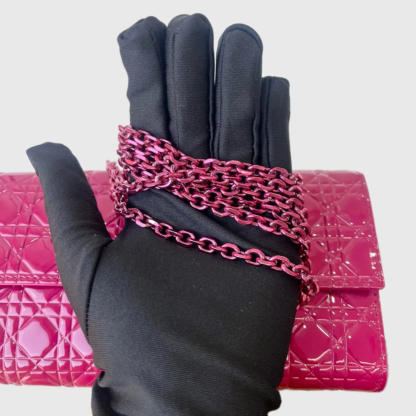 ✨ This Dior bag features a sleek pink cannage pattern, exuding sophistication. The patent leather material adds a glossy finish, making it a standout accessory. Perfect for those who appreciate timeless elegance. The Diorever chain design offers a chic, versatile look. Ideal for both casual and formal occasions.