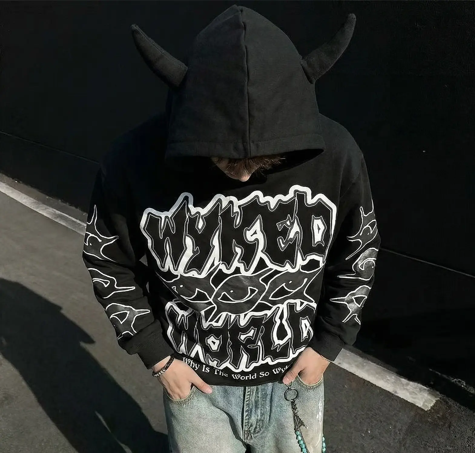 Men's Women's Baggy Horn Graphic Hoodie Unisex Harajuku Y2K Streetwear Pullover Fall Spring All Oversized Christmas Halloween Thanksgiving Day Menswear Sweatshirts Menswear Sweatshirts Tops Long Sleeve Long Sleeve Casual