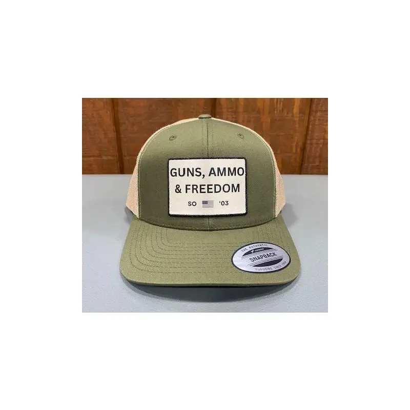 Show your pride with understated style in the Springhill Outfitters Guns, Ammo & Freedom Tan Patch Snapback. Crafted on the reliable RICHARDSON 112 silhouette, this adjustable snapback blends classic fit with a modern, rugged aesthetic. The structured crown and flat visor provide a clean profile, while the tan patch featuring the Springhill Outfitters “Guns, Ammo & Freedom” design adds a distinctive, outdoors-inspired statement.