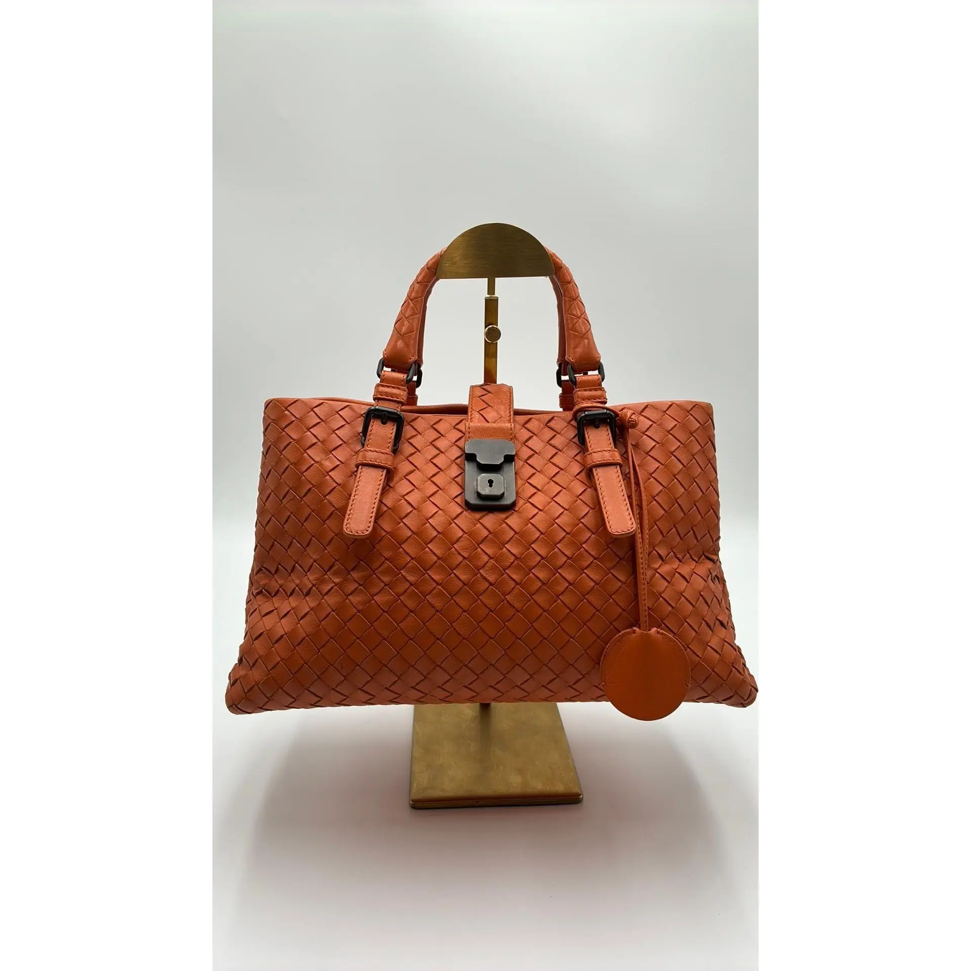 Pre-owned Leather Luxury Bags & Accessories Bottega Veneta Roma Intracciato 2 way Bag, Orange Date Code: 804839561A Entrupy ID: GCXB3RK