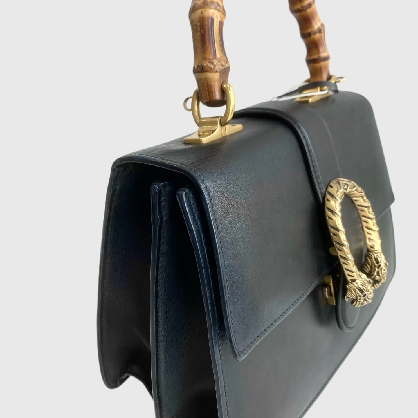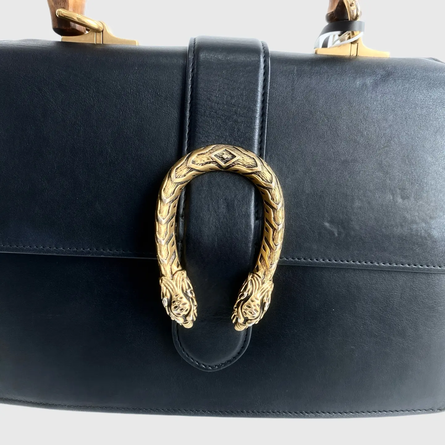 Embrace Gucci's signature style with this Dionysus bag. The black bamboo finish adds a touch of sophistication. It's a must-have for Gucci enthusiasts. Elevate your wardrobe with this classic and chic bag.