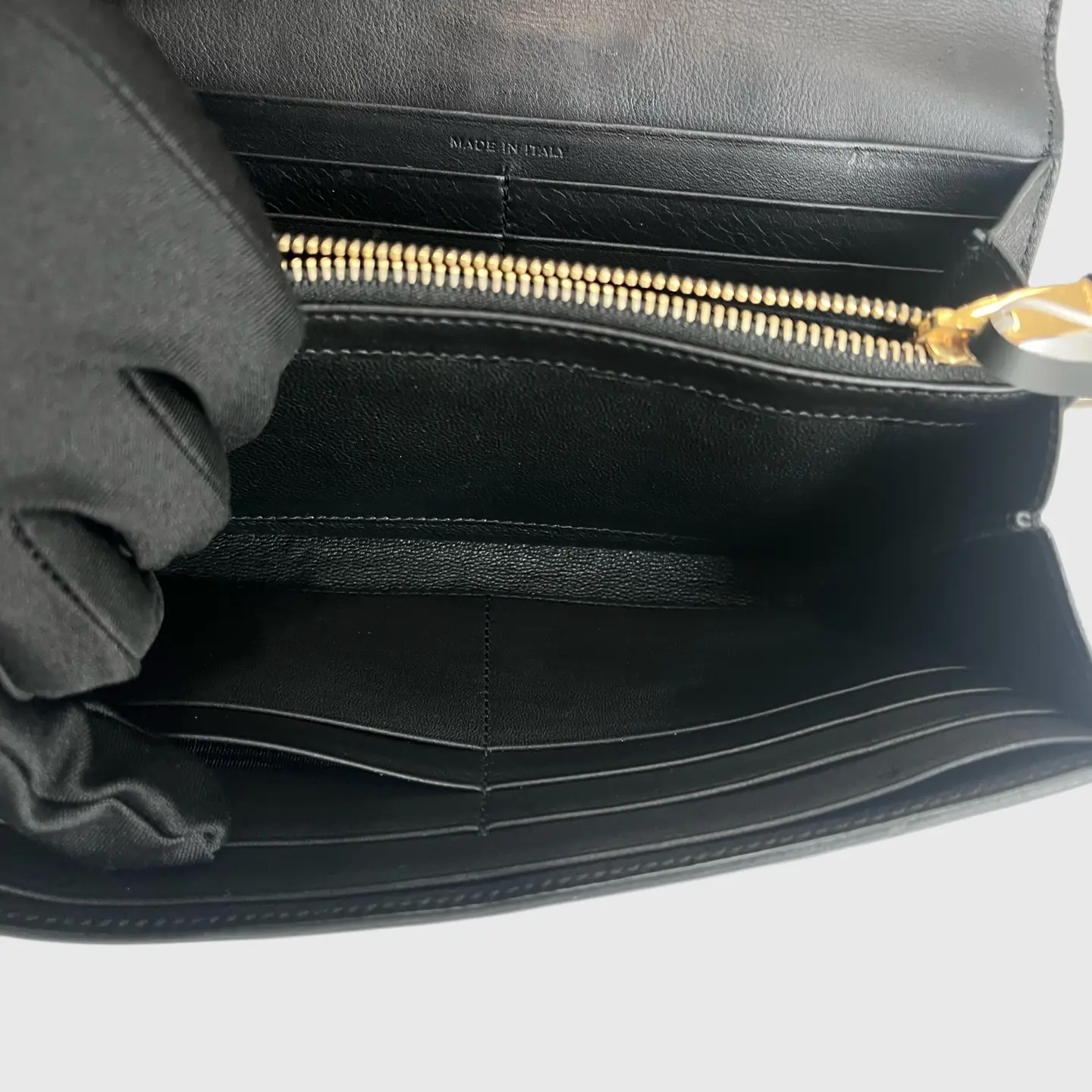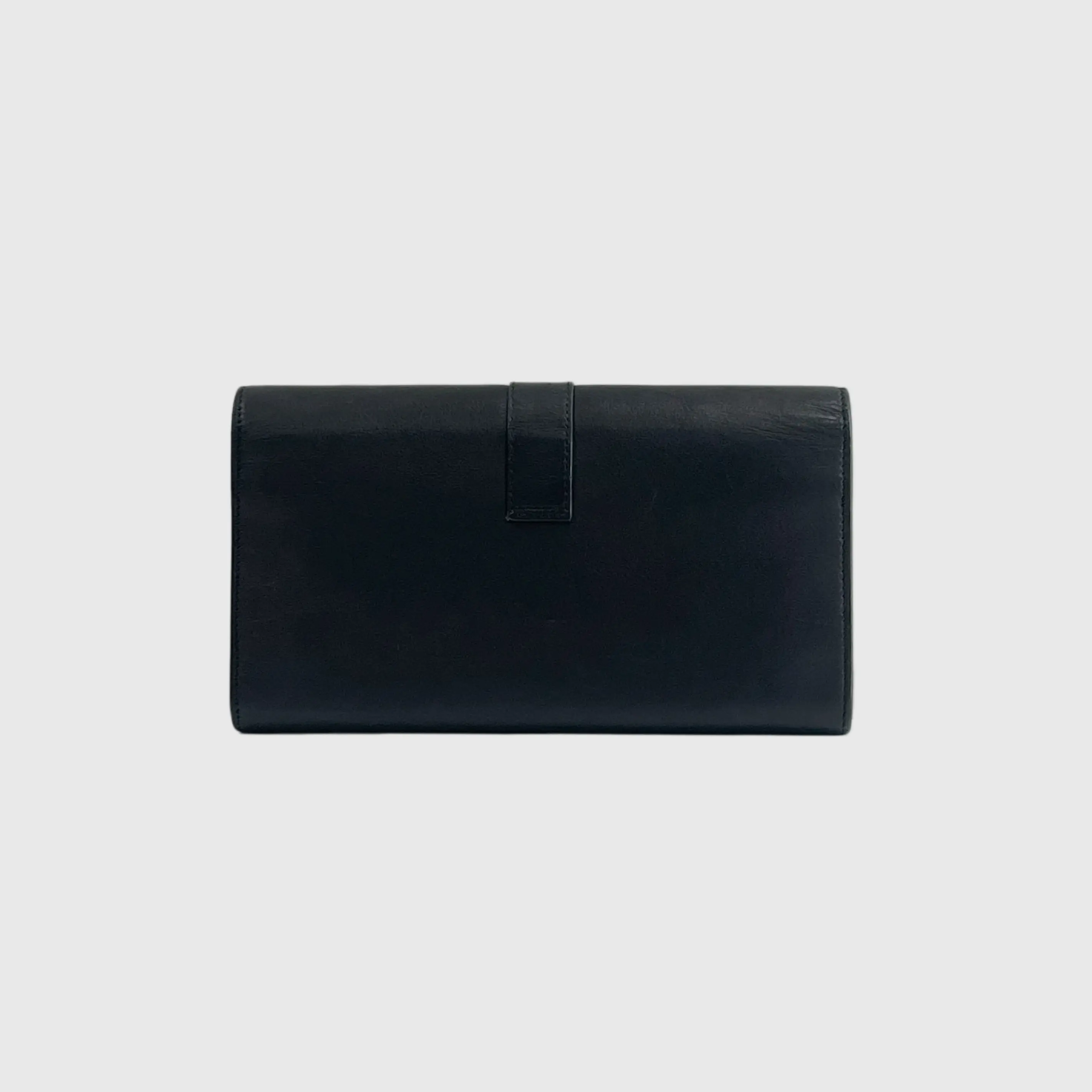 The Yves Saint Laurent Black Leather Long Wallet is a timeless accessory. Crafted in sleek black leather, it exudes sophistication. Perfect for those who appreciate minimalist yet stylish designs. The wallet's elongated shape offers ample space for essentials. Ideal for daily use or special occasions.