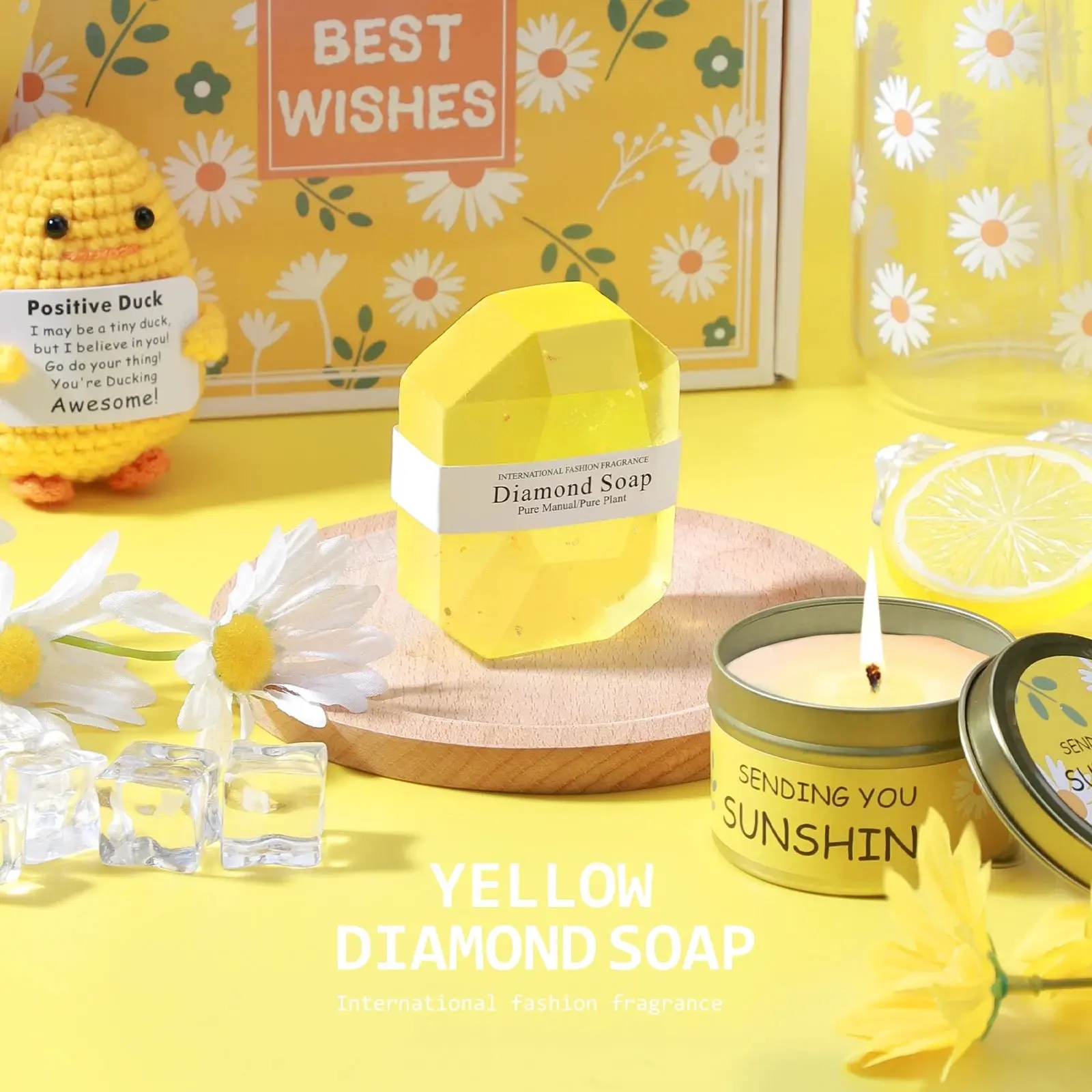 ·Self-Care Items – Includes candle, soap, socks, and scrunchie.