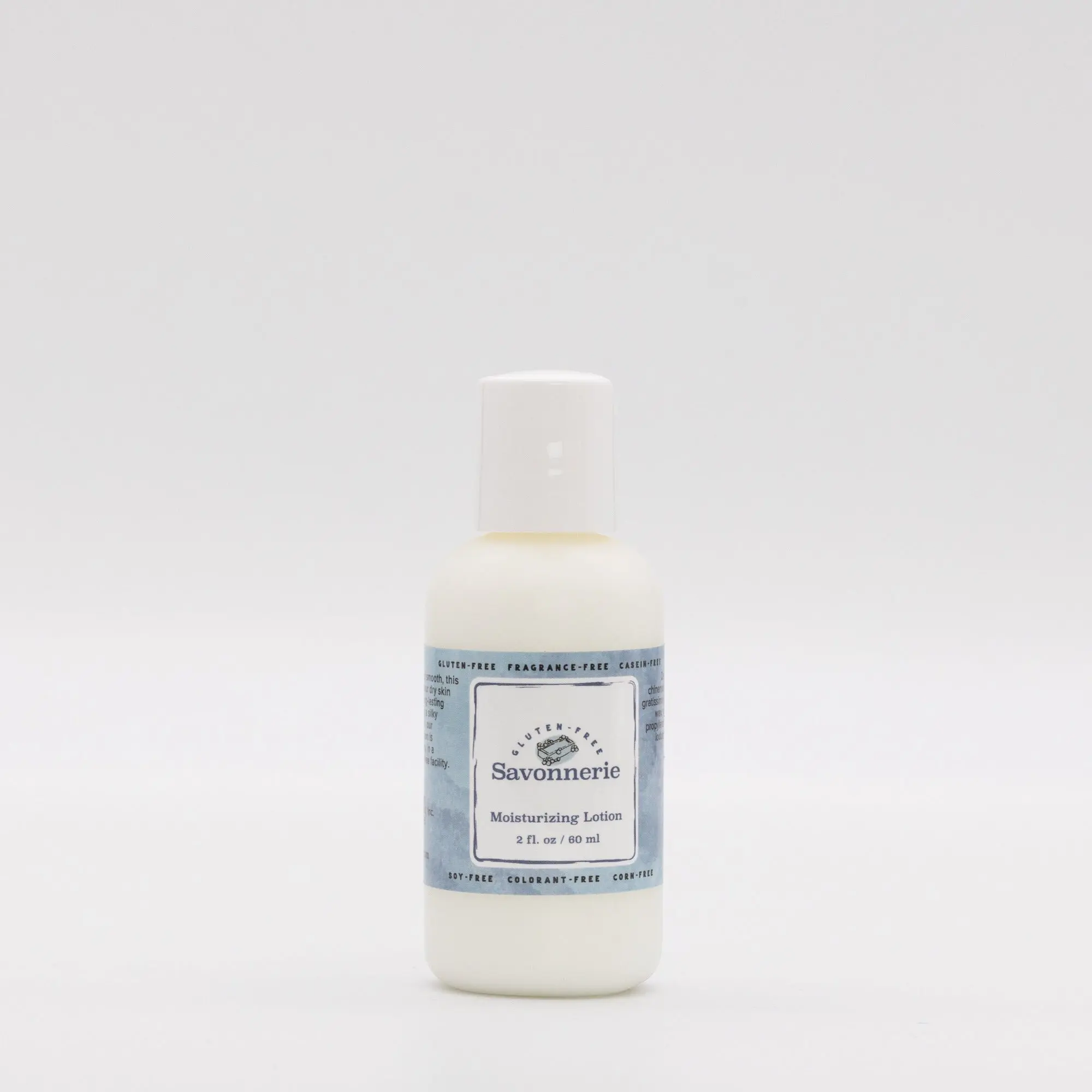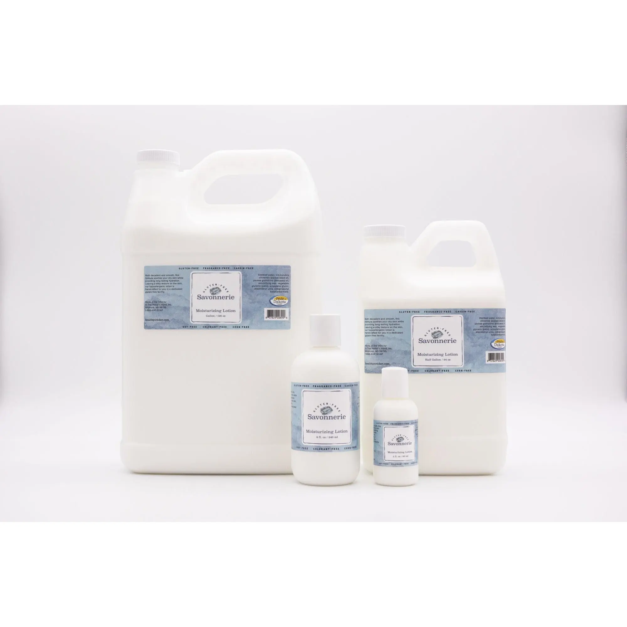 Gluten-Free Savonnerie offers you a luxurious Moisturizing Lotion without fragrance, chemicals or hidden ingredients, so that you will never again be at the mercy of a lotion containing your allergens, gluten, perfume or harsh chemicals on your skin.