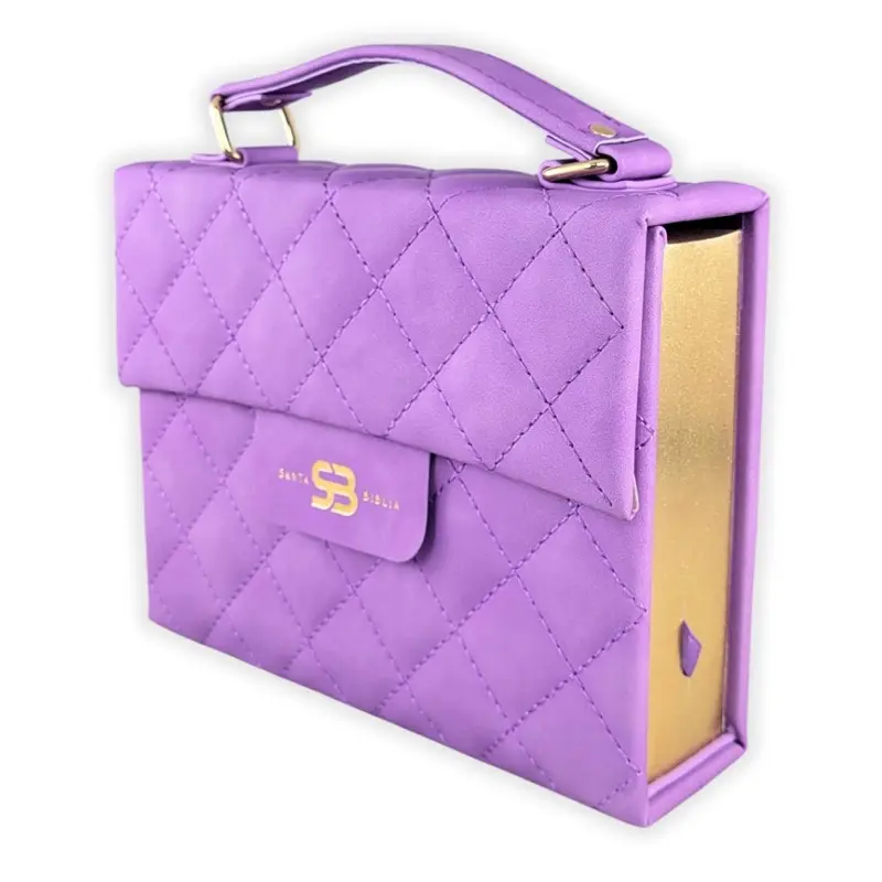 Biblia Cartera - Purple Quilted Design with Gold Interior and Logo Detailing