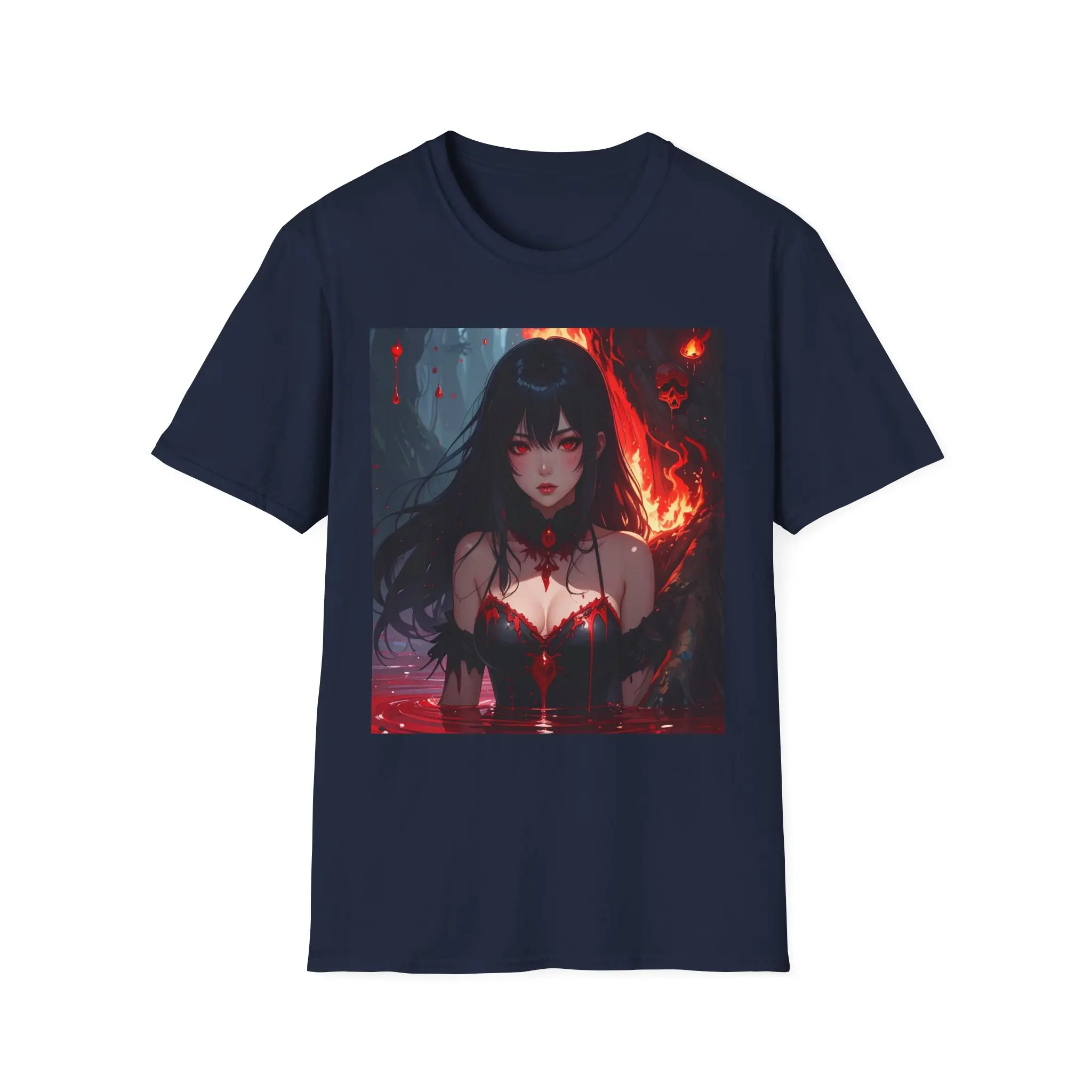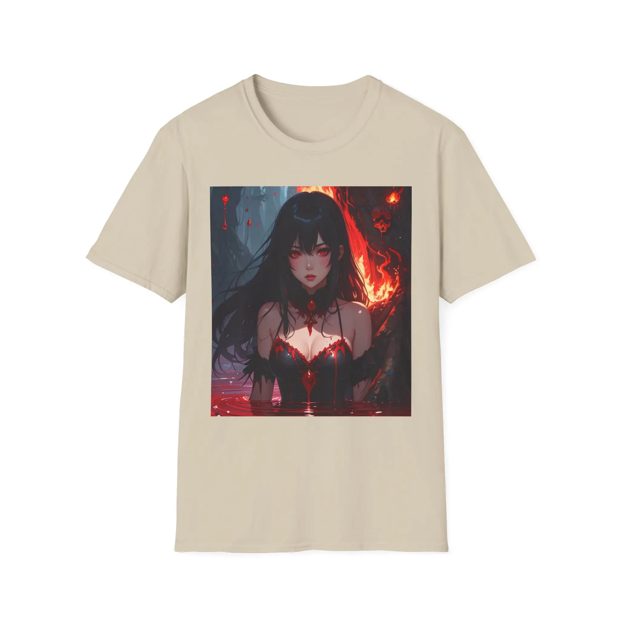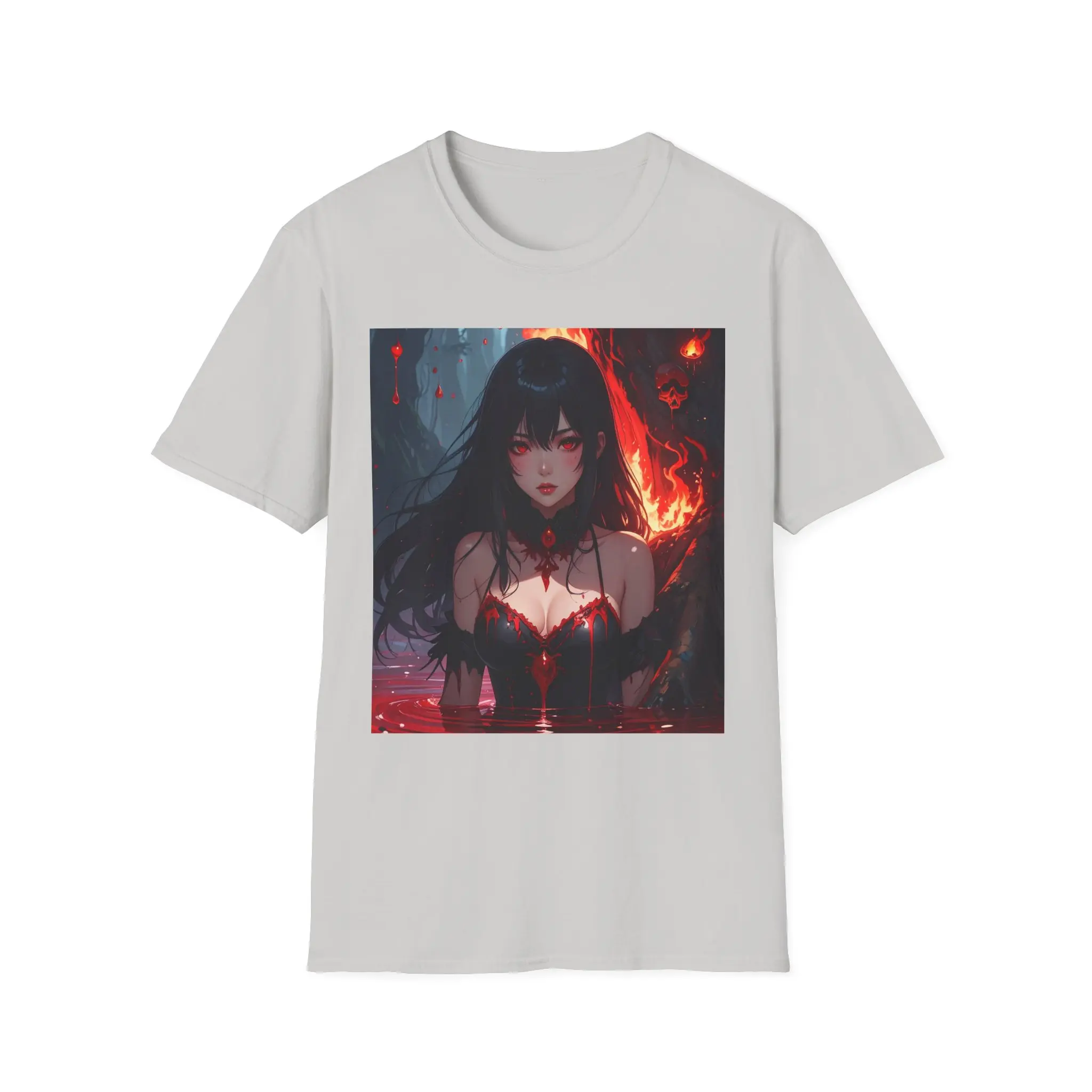A soft, breathable cotton tee printed with a vivid, dark-fantasy illustration of a mysterious woman framed by ember-lit shadows. The lightweight ring-spun fabric drapes easily and holds sharp DTG/DTF prints so the reds and chiaroscuro details remain bold wash after wash. Wear it layered under a jacket for late-night meetups, or loose at home while diving into fan art streams and creative playlists. The crew neckline and classic fit create a clean silhouette that lets the artwork take center stage, while the tubular knit and shoulder taping keep the shirt comfortable and long-lasting. This shirt feels like slipping into a private world—warm, slightly dangerous, and beautifully detailed.