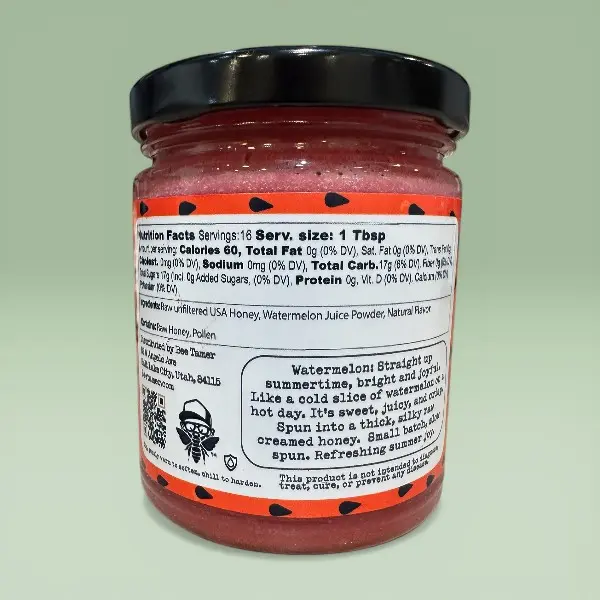 Watermelon Creamed is juicy, refreshing, and summer in a jar. Made with raw creamed honey, watermelon juice powder, and natural flavors, it delivers a light, sweet melon burst with a smooth, creamy finish — bright, playful, and seriously scoopable.