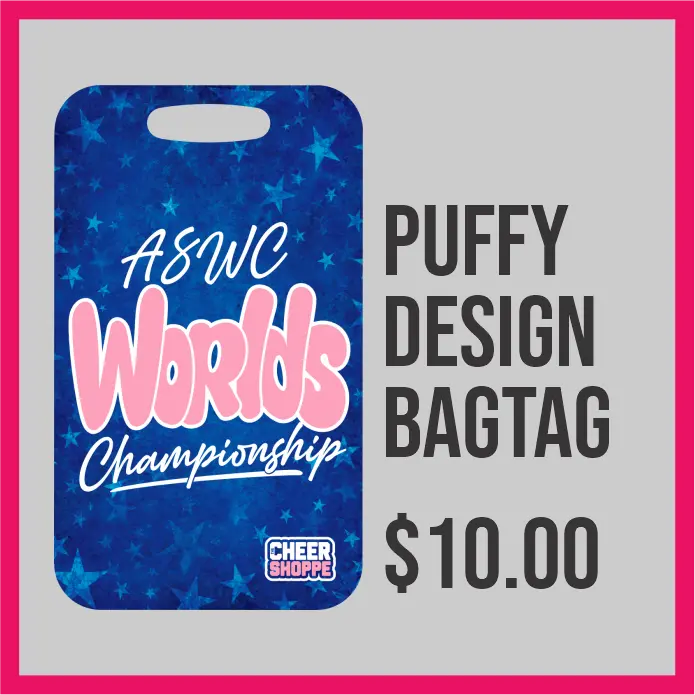Celebrate your all-star status with the All Star World Championship Puffy Bag Tag! Crafted from durable aluminum and officially licensed by The Open Championship Series, this tag is designed to resemble our popular Worlds puffy hoodie, which will available exclusively at ASWC in Orlando. It’s the perfect way to carry your championship spirit wherever you go!